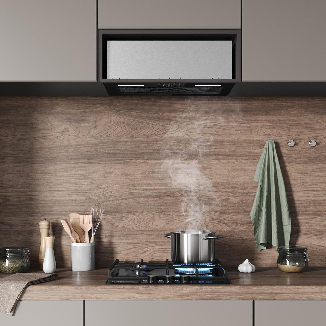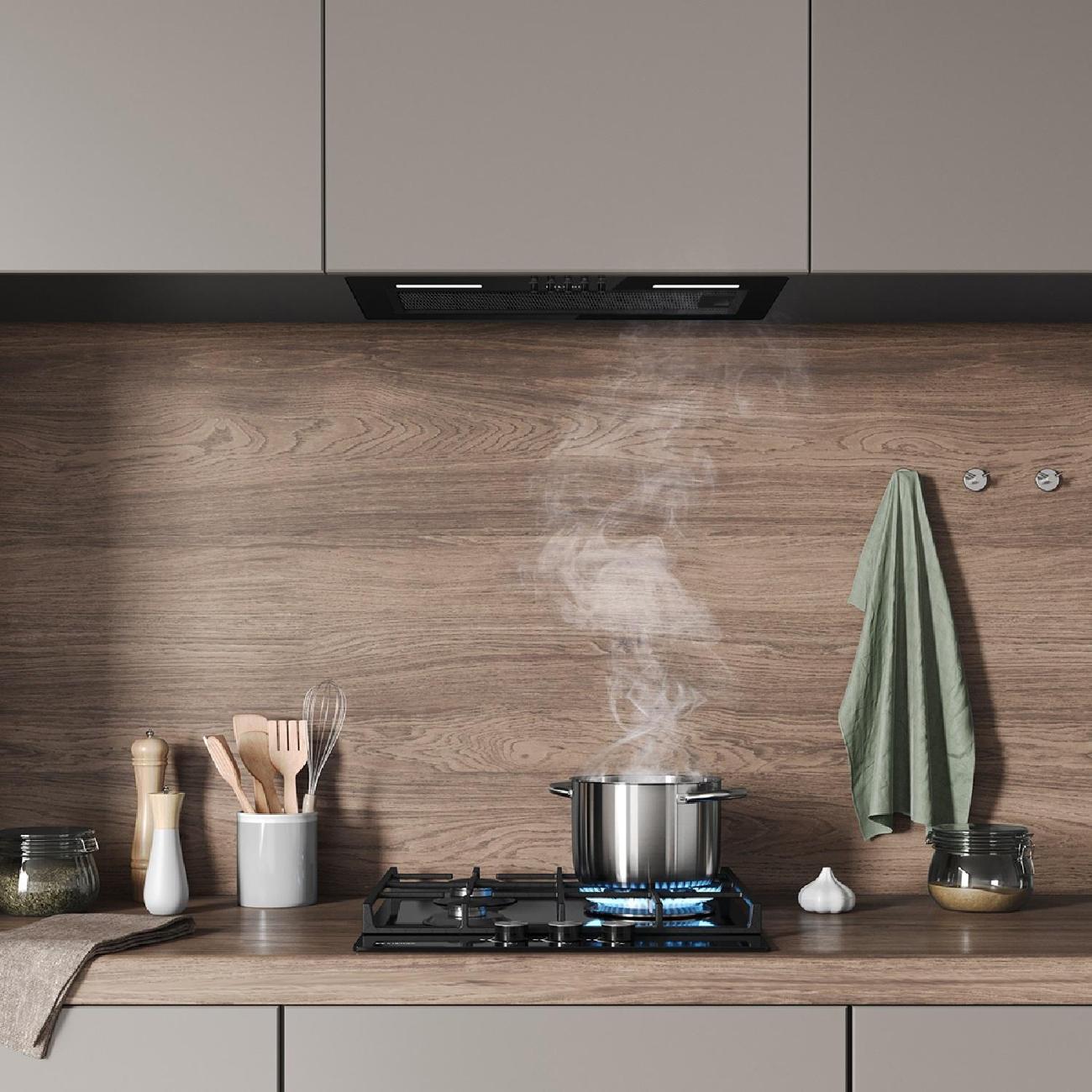 Вытяжка соответствует полностью прям своим размерам и встала четко. Хорошая стоимость, современный дизайн. Выглядит и правда отлично, ничего нет лишнего. Шума особого нет. Подсветка достаточно яркая, ее хватает. Рекомендую.