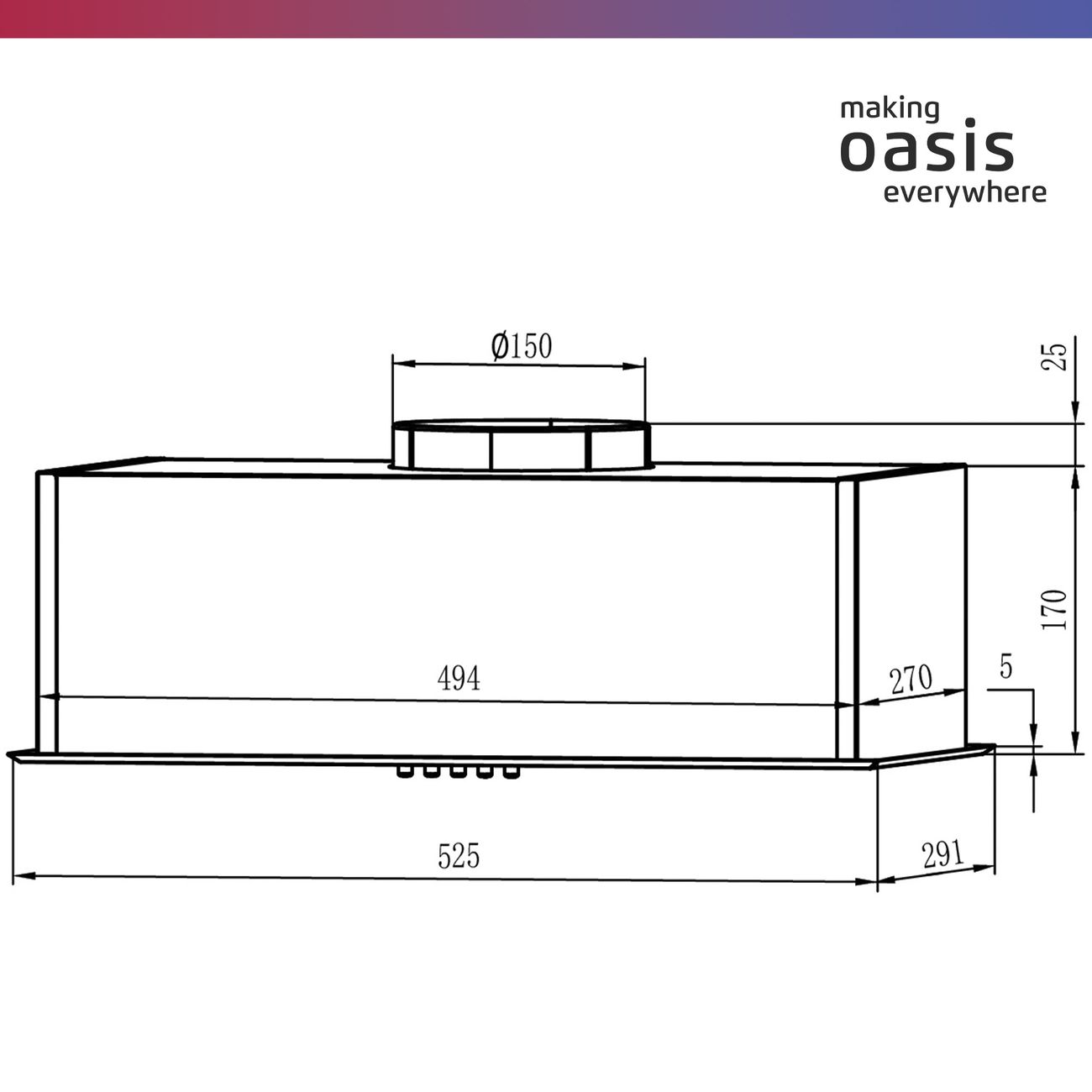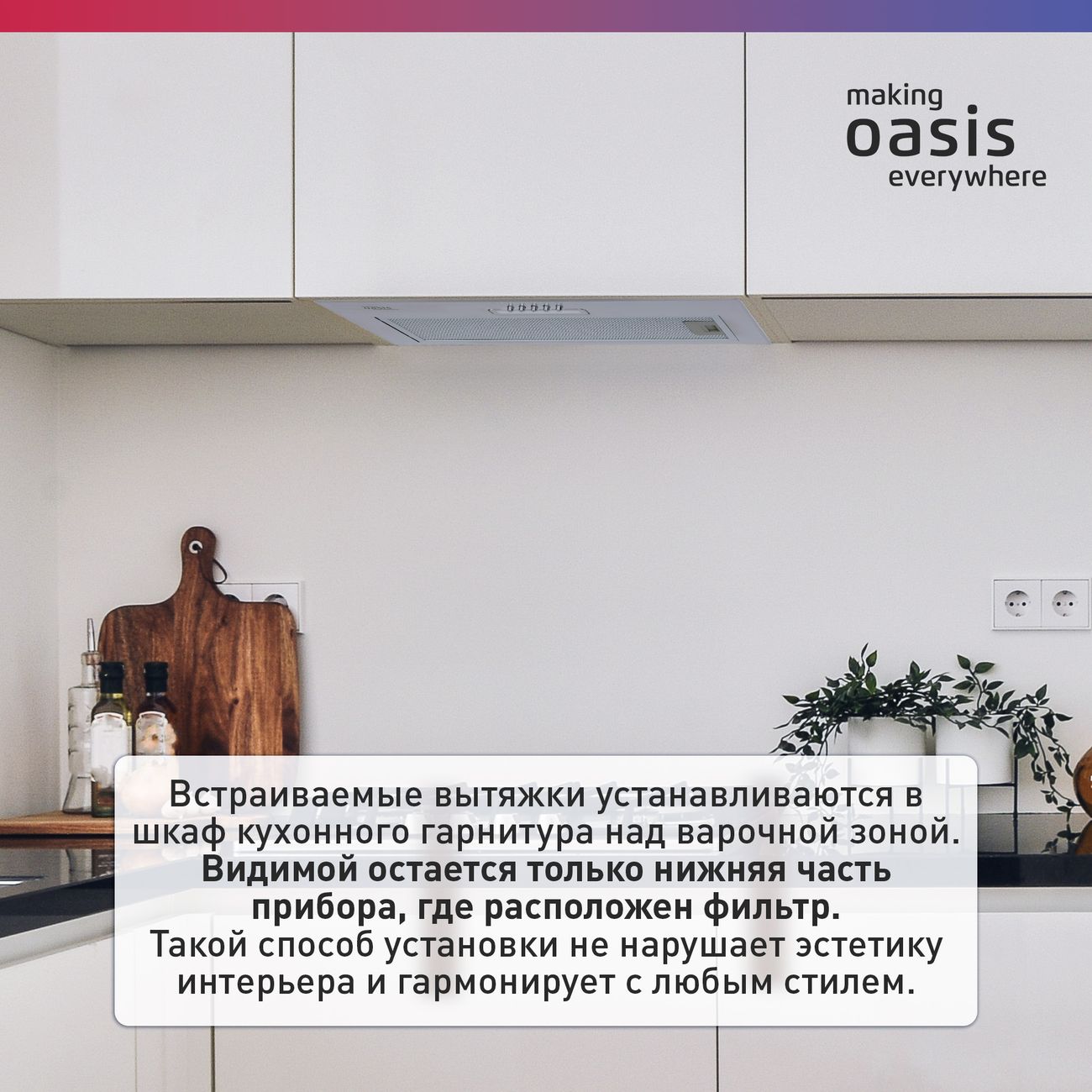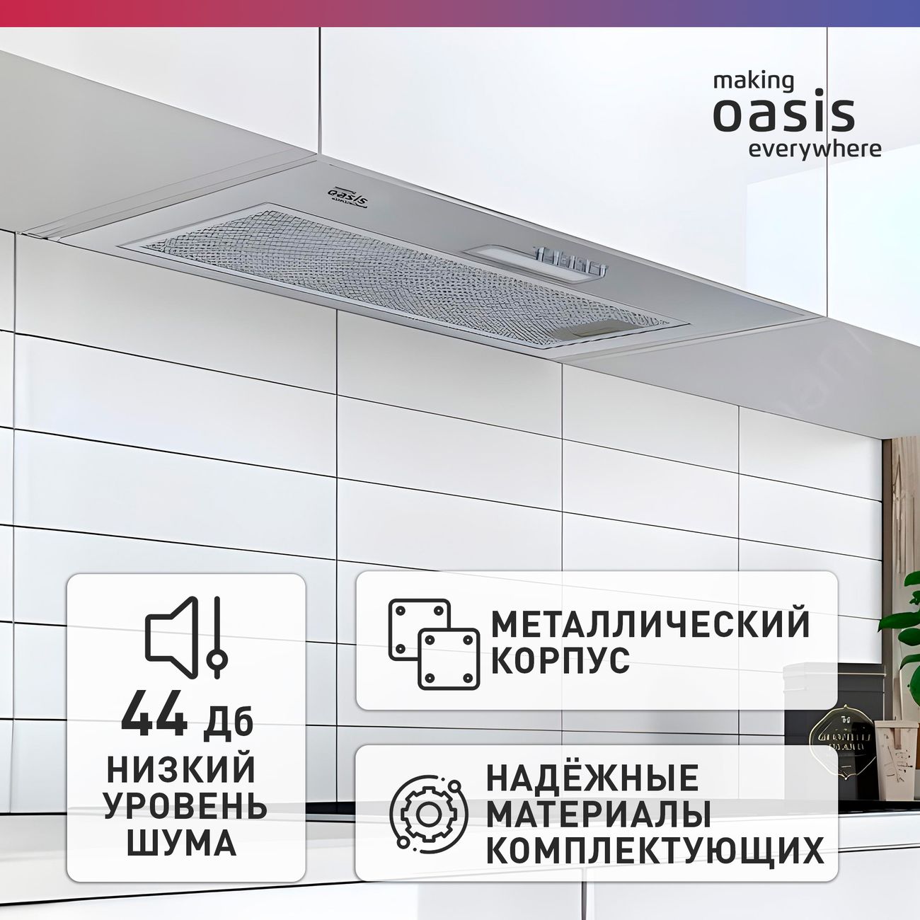 Полностью встраиваемая вытяжка «making Oasis everywhere» VM-52S предназначена для помещений площадью до 22 м². За счёт оптимальной мощности мотора можно очищать воздух в помещении от копоти и гари. Устройство характеризуется тихой работой, уровень шума составляет не более 44 дБ. Благодаря этому использование вытяжки комфортно в любое время. Для освещения рабочей зоны используется светодиодная подсветка.