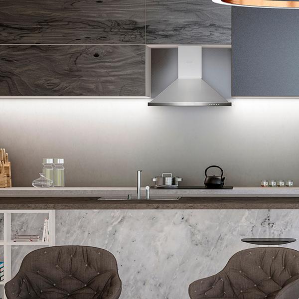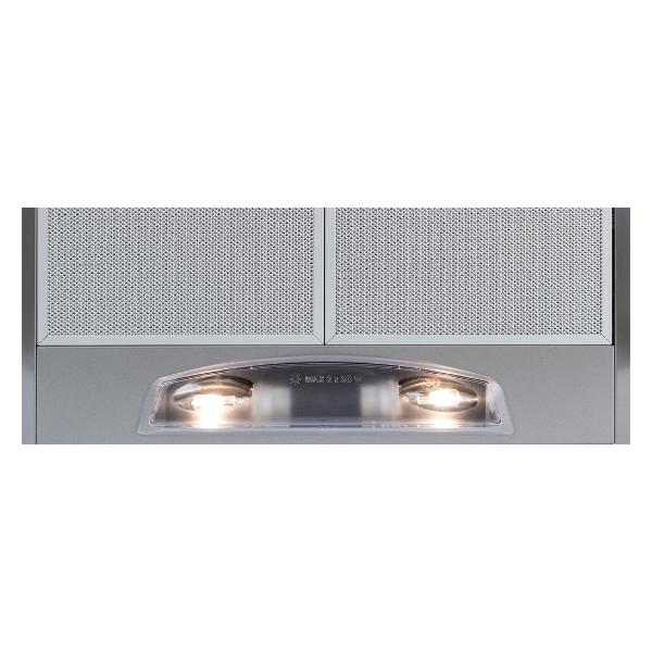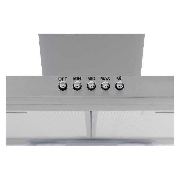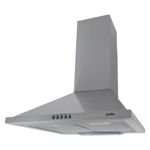 Купольная вытяжка Simfer 8562SM шириной 50 см выполнена из металла, окрашенного в серебристый цвет. Устройство устанавливается над газовой плитой на высоте от 65 см, над электрической — от 45 см. Прибор работает на трех скоростях в режиме отвода воздуха. Производительность — 500 м³/час. Эта модель рассчитана на использование в помещениях площадью до 20 м². В комплект входит жиропоглощающий фильтр. В центре установлено диодное освещение. Управление обеспечивают механические кнопки. Для подключения к сети используется кабель длиной 1,5 м. Вес вытяжки — 7,3 кг.