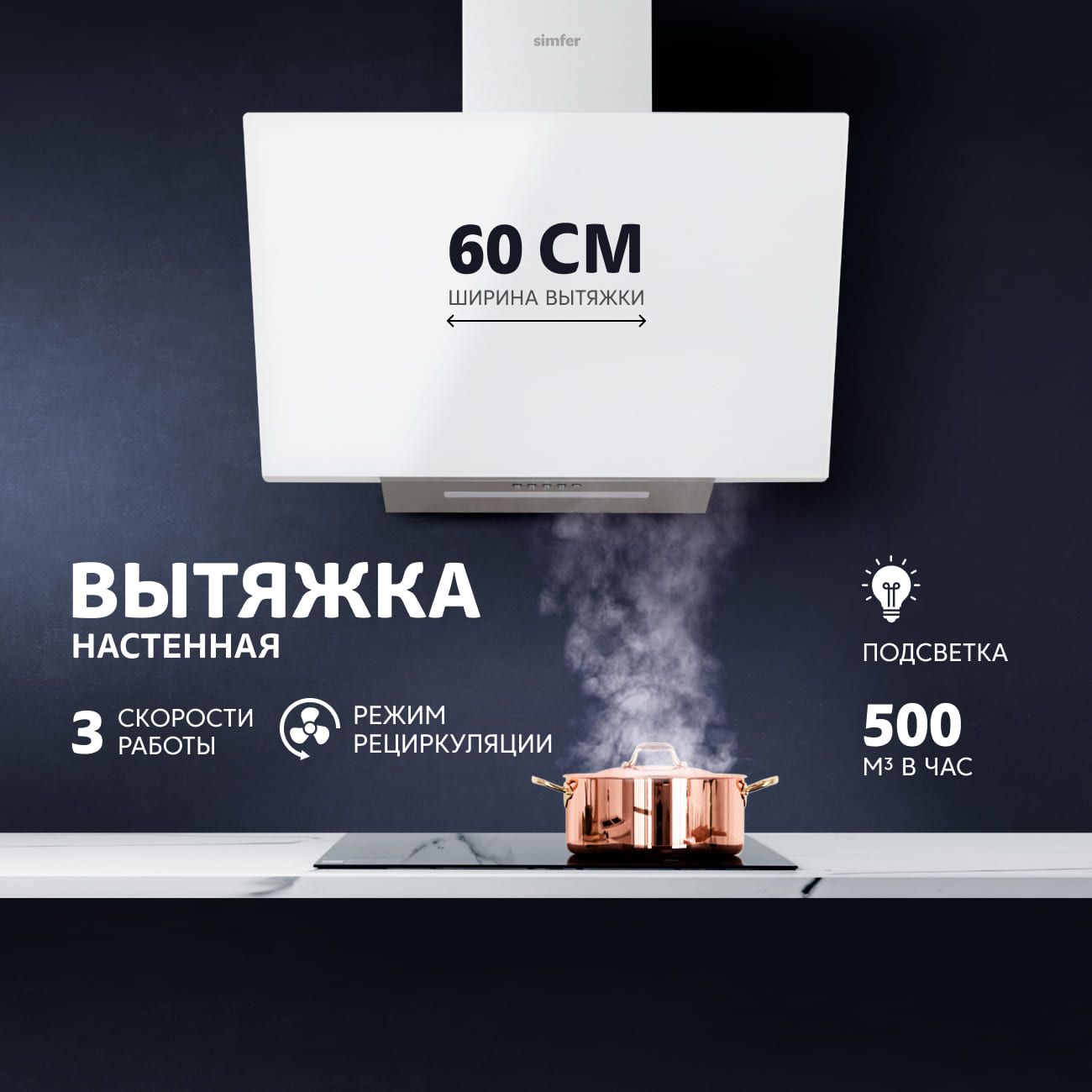 Хотела современную вытяжку, и наткнулась на такой вариант. Три скорости работы — это же прекрасно, плюс подсветка, чтобы лучше видеть рабочую зону, я в восторге. Шум от нее, который напрягал меня во время работы старой вытяжки, просто минимальный. На уши не давит.