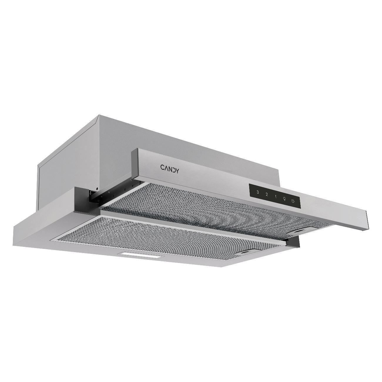 Candy CVXT64SX — встраиваемая в шкаф вытяжка серебристого оттенка. Телескопическая модель поддерживает три скорости и эффективно очищает воздух в режимах отвода и рециркуляции.
