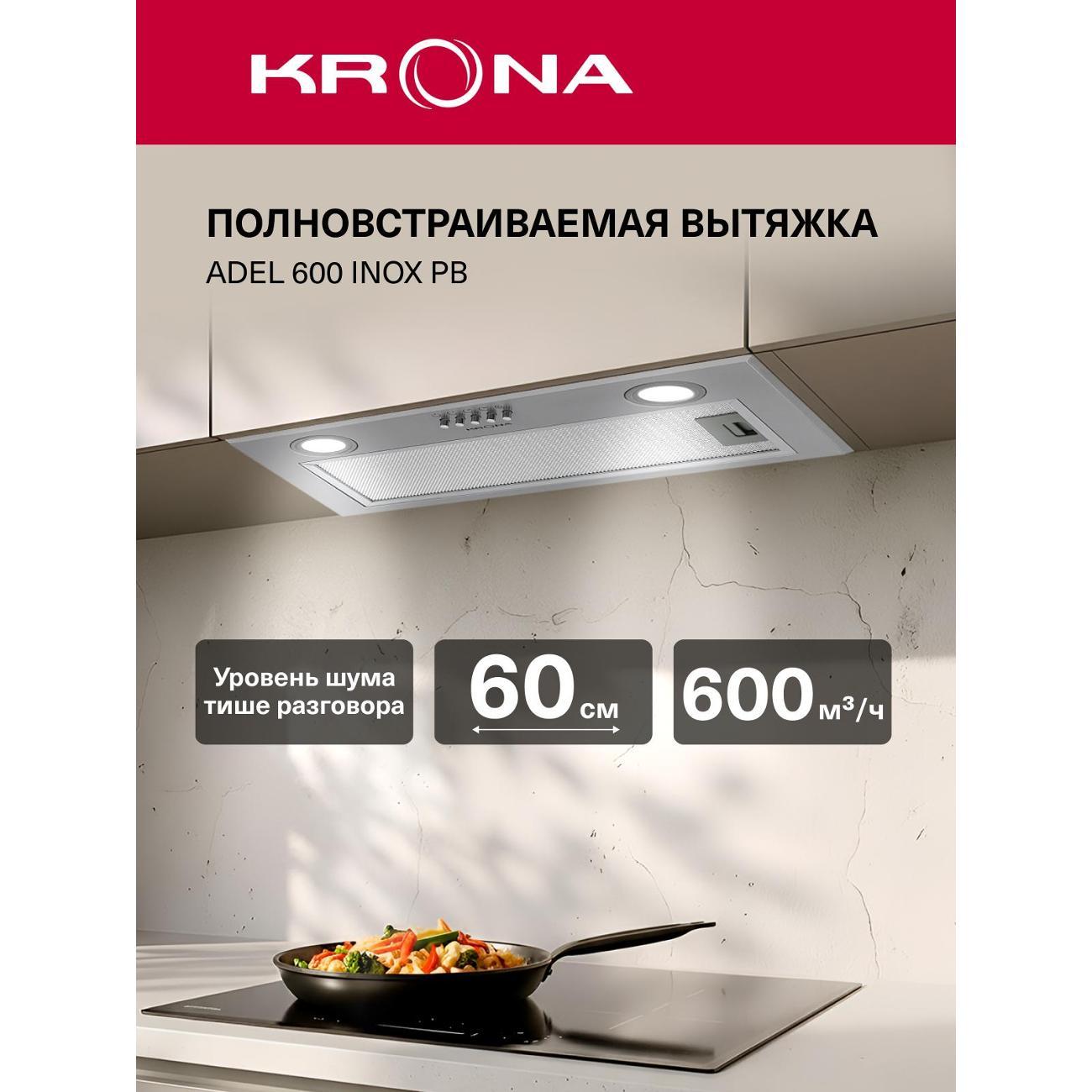 Вы можете купить Вытяжка встраиваемая в шкаф Krona ADEL 600 IX PB в магазинах М.Видео по доступной цене. Вытяжка встраиваемая в шкаф Krona ADEL 600 IX PB: подробное описание, фото и отзывы реальных покупателей, характеристики, возможность скачать инструкции и подобрать аксессуары.