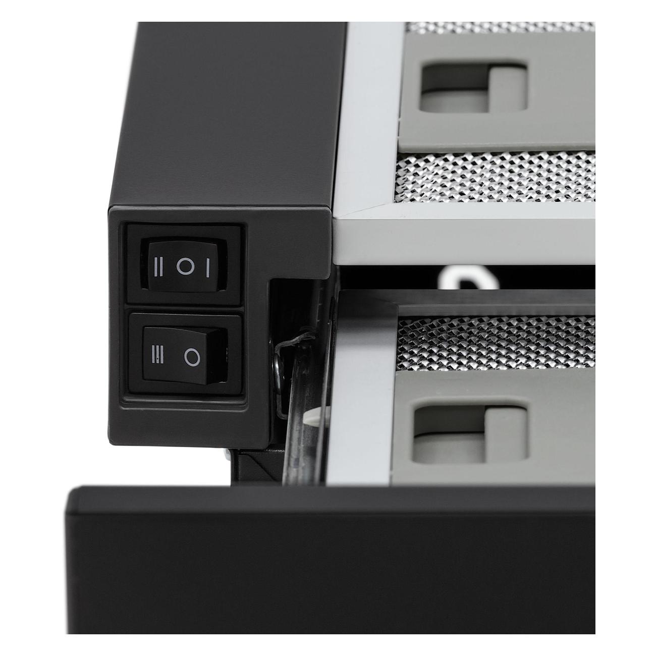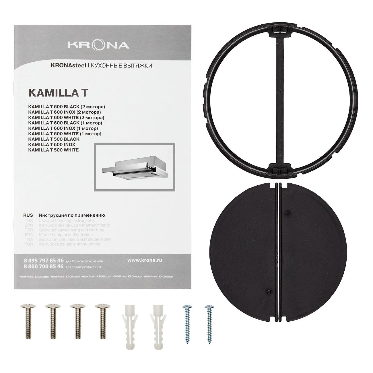 Вытяжка, встраиваемая в шкаф, 50 см Krona Kamilla T 500 Black отличается низким уровнем шума в процессе работы, который не превышает 46 дБ. Металлический корпус модели устойчив к различным внешним повреждениям, легко очищается от загрязнений. Встроен выдвижной козырек с системой автоматического включения устройства. Снизу размещены светодиодные лампы для подсветки варочной поверхности на плите.