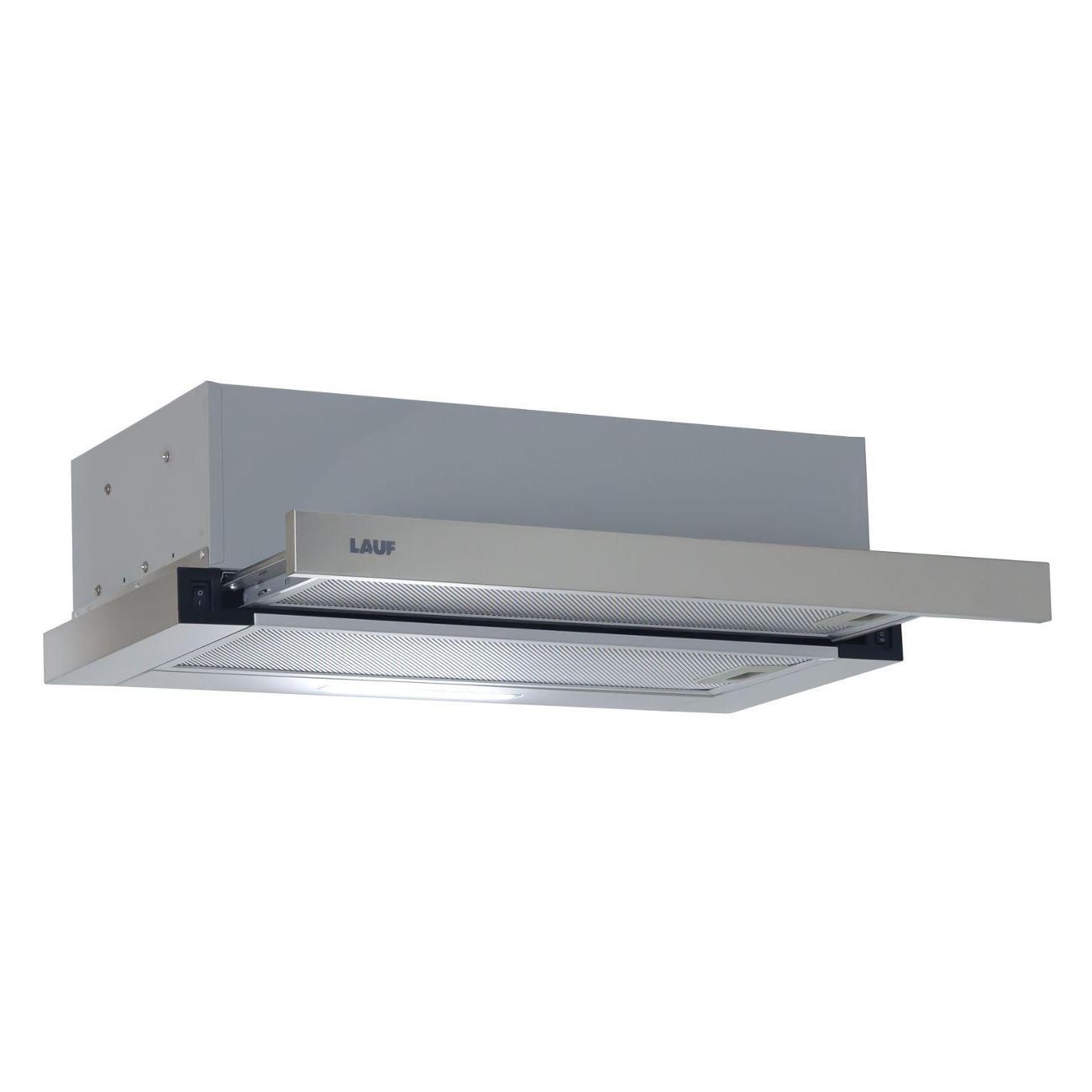 Вытяжка, встраиваемая в шкаф, 60 см Lauf Luna 600 Inox оборудована выдвижным козырьком, при открывании которого устройство включается автоматически. LED-лампы позволяют подсвечивать зону над плитой. Корпус модели выполнен из прочного металла, устойчивого к механическим повреждениям. Предельный показатель энергопотребления составляет 120 Вт.