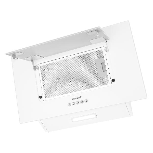Вытяжка 60 см Weissgauff Zaurak 60 PB WH издает не более 65 дБ шума в процессе работы. Устанавливается на стене на высоте не менее 75 см над газовой плитой и 65 см над электрической плитой. Рекомендуемая площадь помещения не должна превышать 27 м². Встроен жиропоглощающий фильтр и светодиодная подсветка рабочей области. Спереди расположен индикатор включения и панель управления кнопочного типа.
