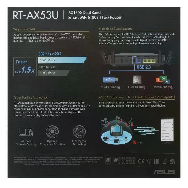 Вы можете купить Wi-Fi роутер Asus RT-AX53U в магазинах М.Видео по доступной цене. Wi-Fi роутер Asus RT-AX53U: подробное описание, фото и отзывы реальных покупателей, характеристики, возможность скачать инструкции и подобрать аксессуары.