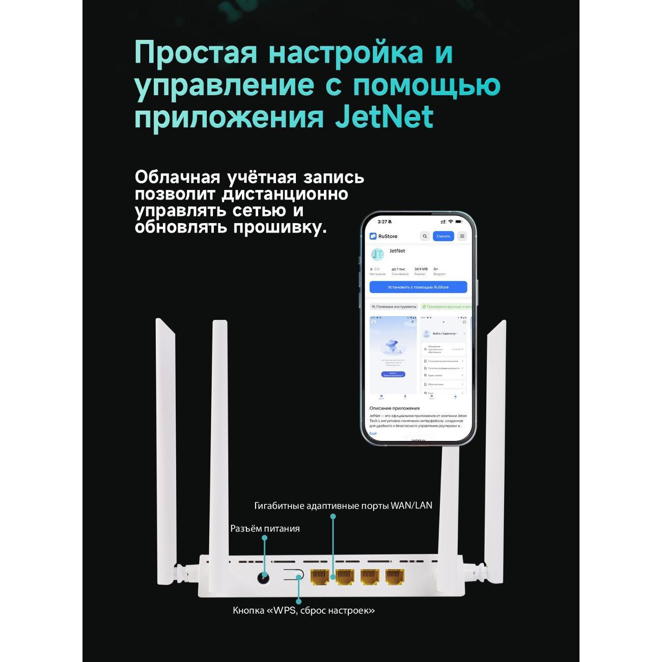 Wi-Fi роутер Jeton Tech AX3000 Air —современное сетевое устройство стандарта Wi-Fi 6, созданное для организации высокоскоростной домашней или офисной инфраструктуры.