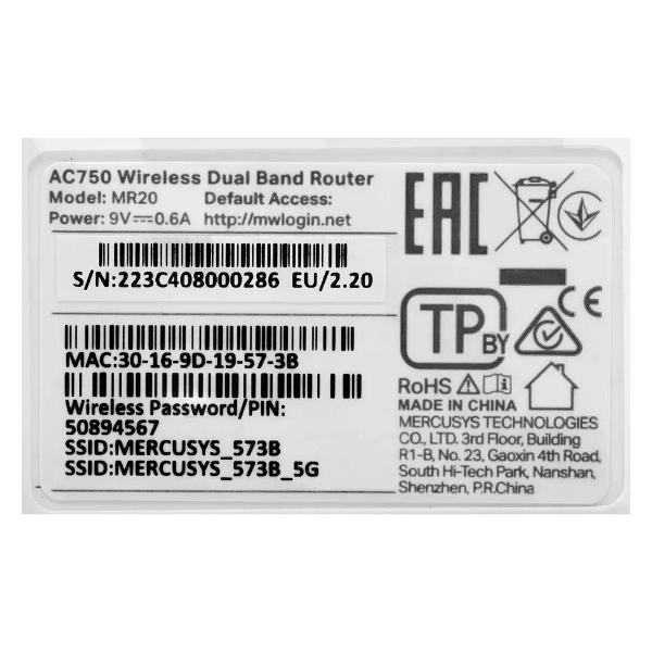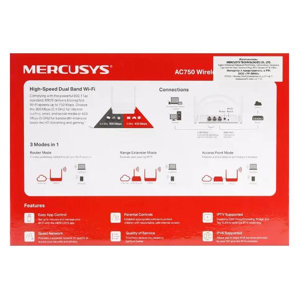 Вы можете купить Wi-Fi роутер Mercusys MR20 в магазинах М.Видео по доступной цене. Wi-Fi роутер Mercusys MR20: подробное описание, фото и отзывы реальных покупателей, характеристики, возможность скачать инструкции и подобрать аксессуары.