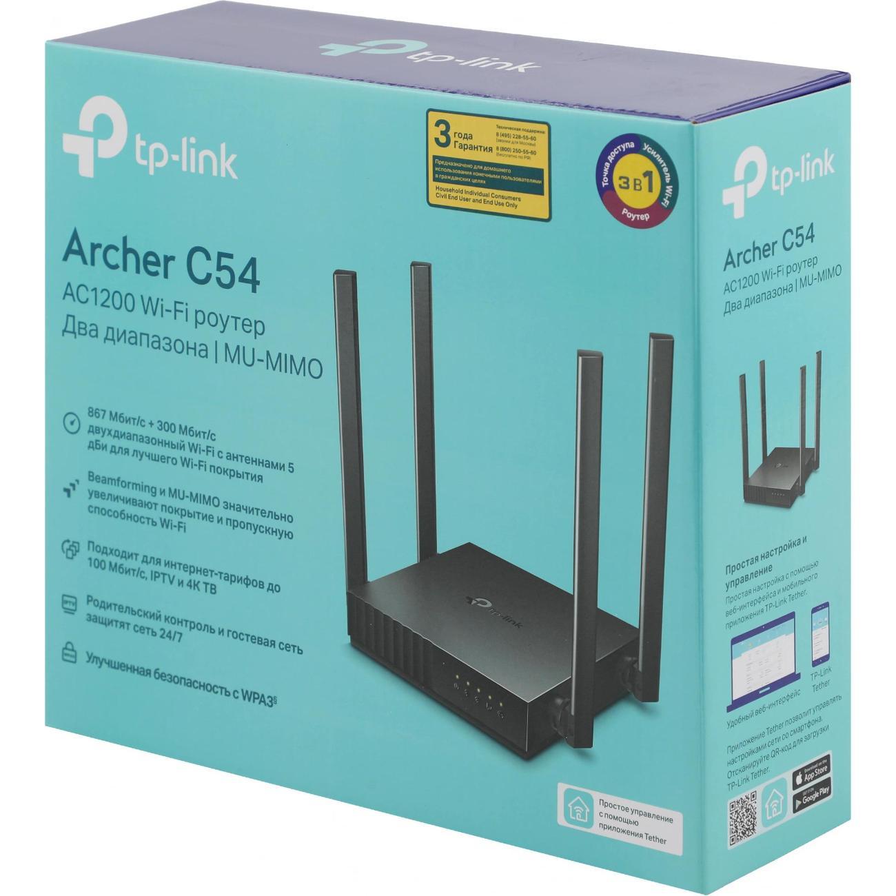 Вы можете купить Wi-Fi роутер TP-Link ARCHER C54 в магазинах М.Видео по доступной цене. Wi-Fi роутер TP-Link ARCHER C54: подробное описание, фото и отзывы реальных покупателей, характеристики, возможность скачать инструкции и подобрать аксессуары.