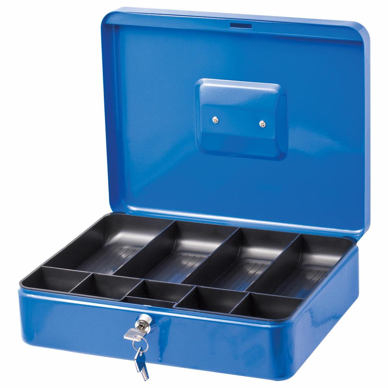 Изготовлен из стали толщиной 0,8 мм. Надежный корпус с удобной ручкой выполнен в синем цвете. С ключевым замком, в комплекте 2 ключа. Размер - 90х240х300 мм.