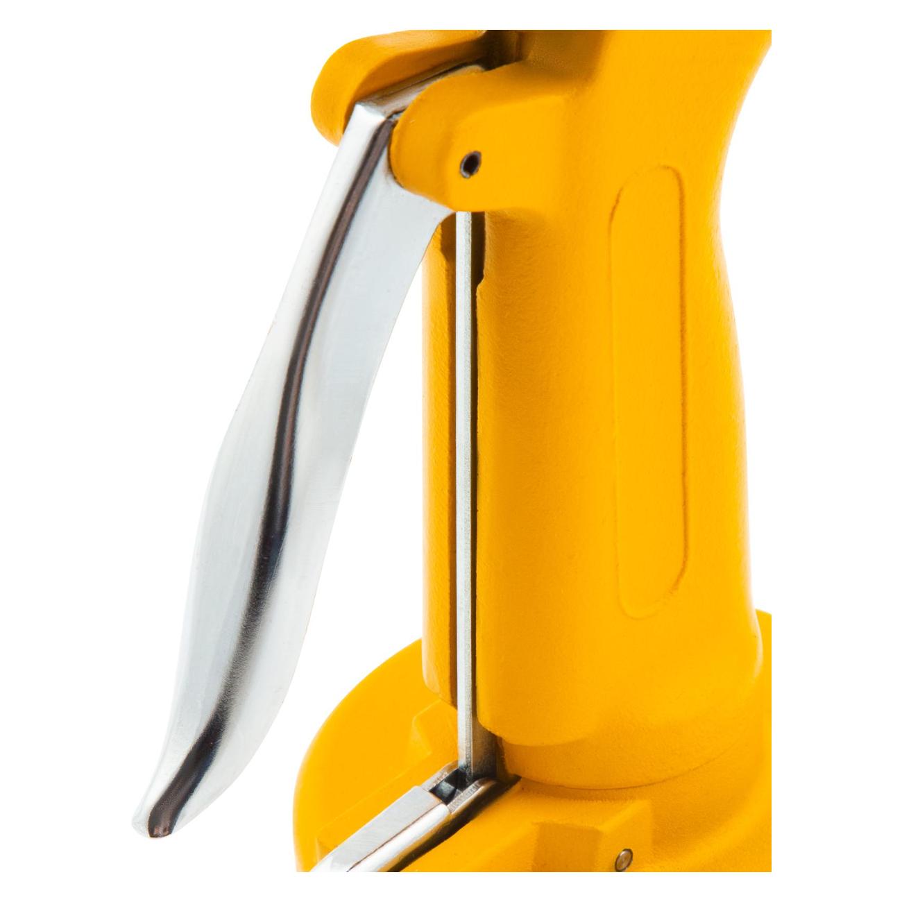 Воздушный двигатель не боится температурных перепадов и перегрузок. Вибрации в процессе работы будут минимальными. Отработанные заклепки попадают в специальный лоток. На корпусе выполнена прорезиненная накладка. Ручка эргономичной формы удобно ложится в руку. Инструмент готов к использованию сразу после покупки.