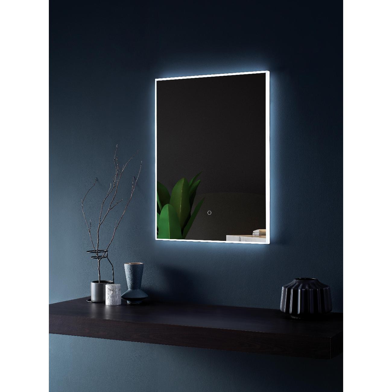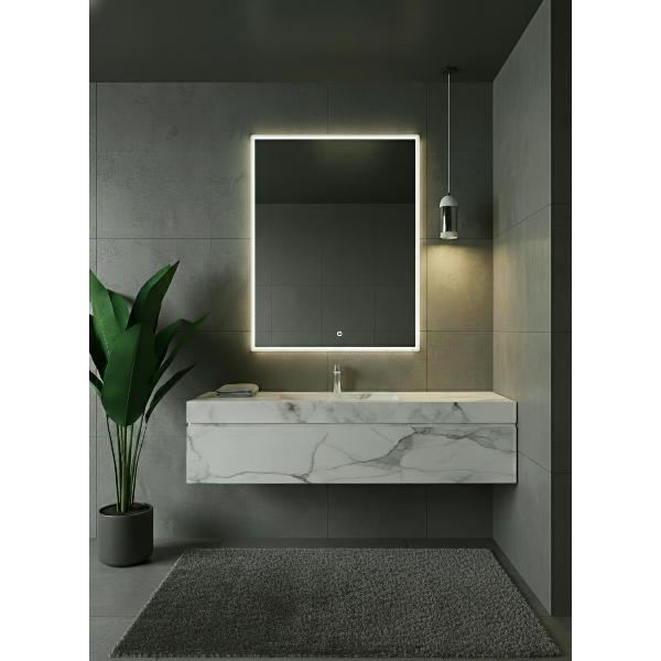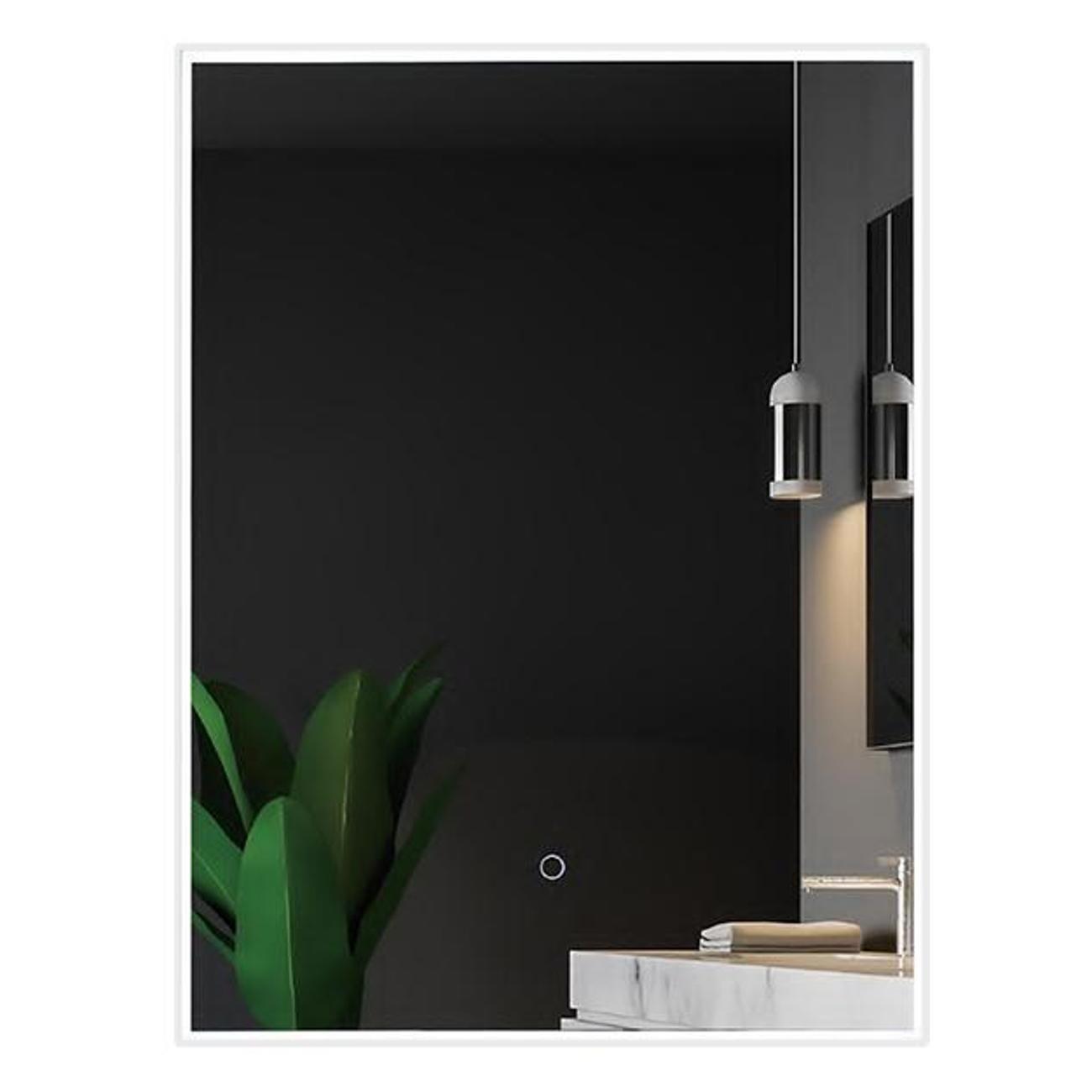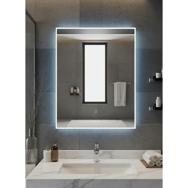 Настенное зеркало Uni‑Flow M‑010 (600×800 мм) с акриловым рассеивателем и сенсорным управлением. Позволяет выбирать цветовую температуру (2700–6400 K) и регулировать яркость (диммирование). Соответствует стандарту CE. Гарантия 1 год.