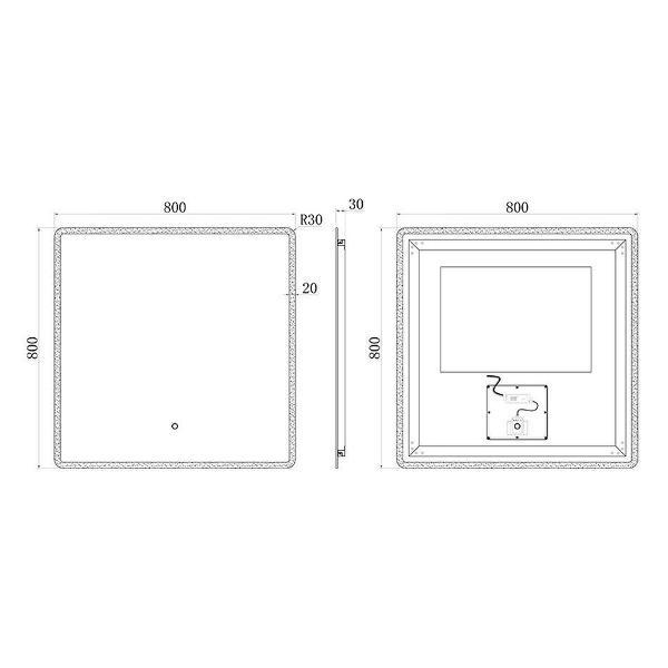 еркало с подсветкой UNI‑FLOW M‑647 800800 Современное прямоугольное зеркало для ванной - сочетание функциональности и стильного дизайна. Основные характеристики: размер: 80×80 см; форма: квадратная; светодиодная подсветка - создаёт комфортное освещение в любое время суток; функция защиты от запотевания - остаётся прозрачным даже после горячего душа; сенсорное управление - удобное и современное; алюминиевая задняя рама - надёжность и долговечность; выбор цветовой температуры подсветки: 2700K - тёплый свет; 4000K - нейтральный свет; 6400K - холодный свет; соответствие стандарту CE - безопасность эксплуатации; современный дизайн - гармонично впишется в любой интерьер ванной комнаты.