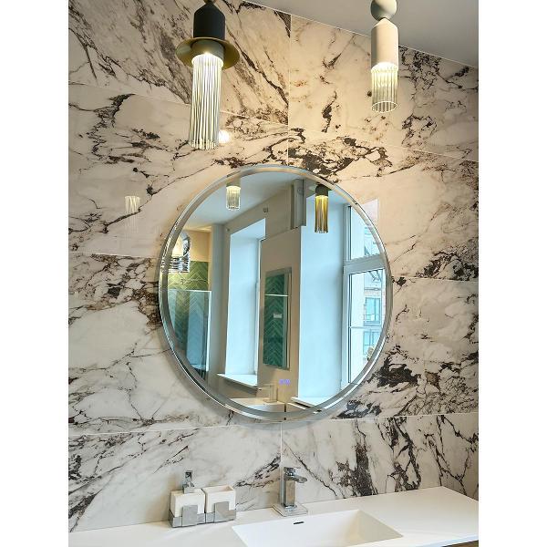 Круглое зеркало с подсветкой UNI-FLOW M-201 диаметром 100 см - это высокотехнологичный элемент интерьера, сочетающий в себе минималистичный дизайн и максимальный комфорт. Отсутствие рамы делает его визуально легким, позволяя гармонично вписаться в любое современное пространство.Преимущества модели: Интеллектуальное освещение: Сенсорная система позволяет одним касанием менять атмосферу в ванной, выбирая между уютным теплым (2700K), естественным дневным (4000K) или бодрящим холодным светом (6400K). Всегда четкое отражение: Встроенная функция антизапотевания избавляет от необходимости протирать зеркало после принятия душа - поверхность остается идеально чистой. Удобное управление: Чувствительный сенсорный переключатель мгновенно реагирует на касание, обеспечивая простоту эксплуатации. Надежность и безопасность: Электрические компоненты выполнены по стандарту CE, что гарантирует долгий срок службы и защиту во влажной среде.