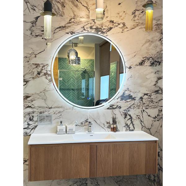 Круглое зеркало с подсветкой UNI-FLOW M-201 диаметром 90 см - это высокотехнологичный элемент интерьера, сочетающий в себе минималистичный дизайн и максимальный комфорт. Отсутствие рамы делает его визуально легким, позволяя гармонично вписаться в любое современное пространство.Преимущества модели: Интеллектуальное освещение: Сенсорная система позволяет одним касанием менять атмосферу в ванной, выбирая между уютным теплым (2700K), естественным дневным (4000K) или бодрящим холодным светом (6400K). Всегда четкое отражение: Встроенная функция антизапотевания избавляет от необходимости протирать зеркало после принятия душа - поверхность остается идеально чистой. Удобное управление: Чувствительный сенсорный переключатель мгновенно реагирует на касание, обеспечивая простоту эксплуатации. Надежность и безопасность: Электрические компоненты выполнены по стандарту CE, что гарантирует долгий срок службы и защиту во влажной среде.