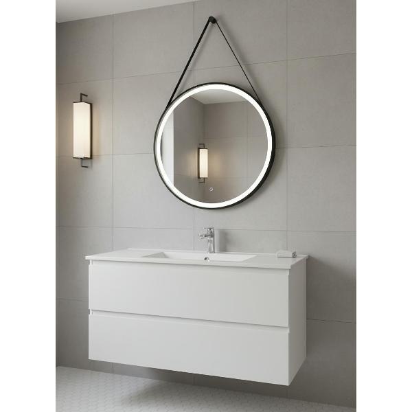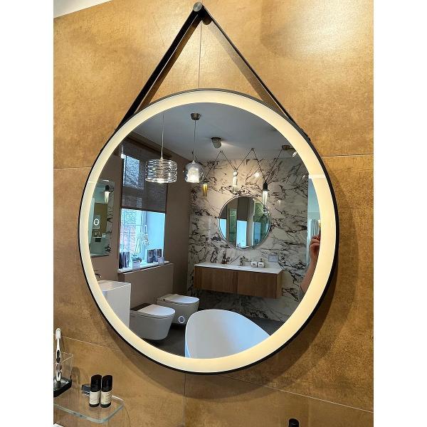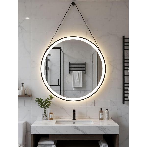 Круглое зеркало диаметром 100 см в металлической раме - стильное и функциональное решение для ванной комнаты или гардеробной. Почему стоит выбрать это зеркало? Гибкое освещение: сенсорная система позволяет выбрать оптимальную цветовую температуру светодиодной подсветки: 2700K - тёплый свет для расслабляющей атмосферы; 4000K - нейтральный свет, близкий к дневному; 6400K - холодный свет для максимальной чёткости деталей. Защита от запотевания - зеркало остаётся прозрачным даже после горячего душа. Удобное управление: сенсорный выключатель обеспечивает быстрый и комфортный доступ к настройкам. Надёжное крепление: зеркало фиксируется на стене с помощью прочного ремня - эстетично и надёжно. Качество и безопасность: металлические элементы рамы устойчивы к влаге и коррозии, электрические компоненты соответствуют стандарту CE.