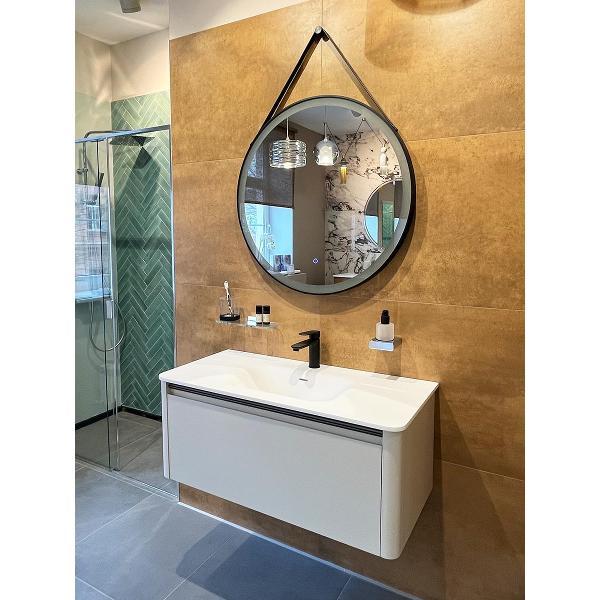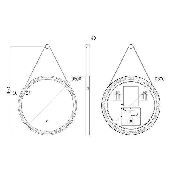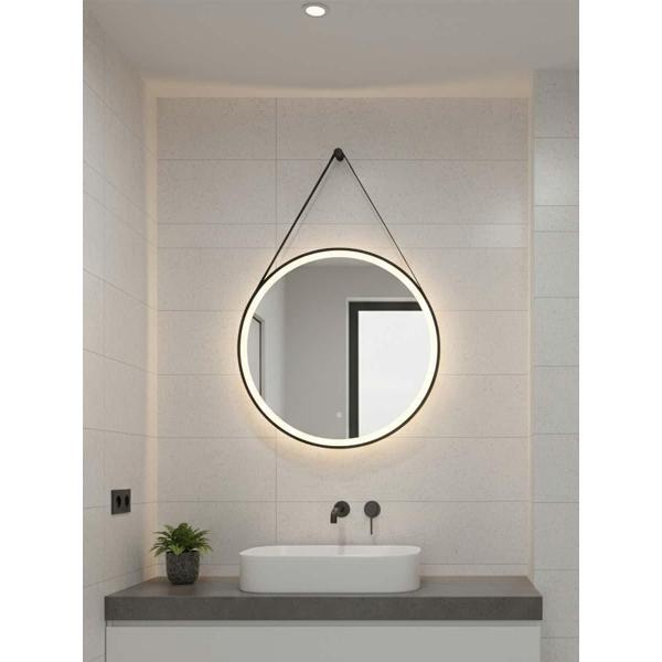 Круглое зеркало диаметром 60 см в металлической раме - компактное и функциональное решение для ванной комнаты, прихожей или гардеробной. Почему стоит выбрать это зеркало? Гибкое освещение: сенсорная система позволяет выбрать оптимальную цветовую температуру светодиодной подсветки: 2700K - тёплый свет для расслабляющей атмосферы; 4000K - нейтральный свет, близкий к дневному; 6400K - холодный свет для максимальной чёткости деталей. Защита от запотевания - зеркало остаётся прозрачным даже после горячего душа. Удобное управление: сенсорный выключатель обеспечивает быстрый и комфортный доступ к настройкам. Компактность и стиль: диаметр 60 см позволяет разместить зеркало даже в небольшом пространстве, а металлическая рама придаёт современный вид и устойчива к влаге и коррозии. Надёжное крепление: зеркало фиксируется на стене с помощью прочного ремня - эстетично и надёжно. Безопасность и качество: электрические компоненты соответствуют стандарту CE.