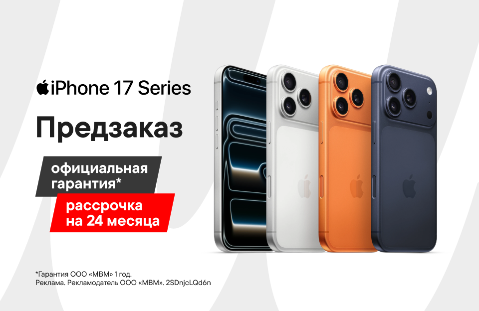 Акция «Рассрочка 0-0-24» действует на товары по акции при оформлении кредита с 01.09.2025 г и до особого распоряжения. Покупайте товары/услуги по акции «Рассрочка 0-0-24» на срок до 24 месяцев. Кредит предоставляет АО «ОТП Банк» Генеральная лицензия Банка России №2766 от 27.11.2014 г.; 125171, г. Москва, Ленинградское шоссе, д. 16А, стр. 2.; ОГРН 1027739176563 (далее – «Банк»). Займы предоставляет ООО МФК "ОТП Финанс" сведения о котором внесены в государственный реестр микрофинансовых организаций 16 февраля 2015 года за номером 651503045006297 , адрес 127299, г. Москва, улица Клары Цеткин, д. 4А; ОГРН 1157746064300 (далее МФК). В акции участвуют товары и/или услуги из списка организатора акции - ООО «МВМ», 105066, Россия, г. Москва, ул. Нижняя Красносельская, д. 40/12, корп. 20, эт.5, пом. II, ком. 3; ОГРН 1057746840095 (далее – «Продавец»). В рамках акции Банк/МФК предоставляет покупателю кредит/заем «М 0-0-24 +Б» на товар и/или услугу Продавца, при оплате которого, в течение 24-ти месяцев ежемесячными платежами, предусмотренными графиком погашения по кредиту/займу, не возникает переплаты при покупке товара. Переплата за товар отсутствует благодаря скидке в размере 15% от первоначальной стоимости товара/ услуги, предоставляемой Продавцом. Скидка не распространяется на дополнительные услуги при оформлении кредита/займа. Первоначальный взнос 0% от цены товара и/или услуги, максимальный срок кредита - до 24 мес. Диапазон значений полной стоимости кредита в Банке 16,100% - 32,270% (годовых). Диапазон значений полной стоимости займа МФК 16,100% - 56,600%(годовых). *Размеры процентных ставок, продолжительность соответствующих периодов их действия и количество таких периодов (возможно установление до 3-х периодов) в каждом конкретном случае определяются Банком/МФК по результатам скоринга. Процентная ставка за пользование кредитом/займом составляет: по кредиту в Банке 16,1%-32,2% (годовых), по займу МФК 16,1%-56,2%(годовых) и действует начиная с 1 по 24-й календарный месяц, при условии оплаты покупателем ежемесячных платежей строго в размере, предусмотренном графиком погашения по кредиту/займу. Стоимость товаров/ услуг для оформления кредита от 3 000 до 300 000 руб. с учётом применённых скидок/ бонусов. Решение о выдаче кредита принимается Банком/о предоставлении займа принимается МФК по своему усмотрению на основании предоставленных покупателем документов. Не является публичной офертой. Количество товара/ услуг ограничено. Условия кредита/займа актуальны на дату начала акции и могут быть изменены Банком/ МФК/ Организатором Акции. Полный текст правил, перечень товаров/ услуг, подробности приобретения товаров/ услуг в кредит в рамках акции уточняйте в магазинах «М.Видео», на сайте www.mvideo.ru, также по телефону 8 800 600-777-5.