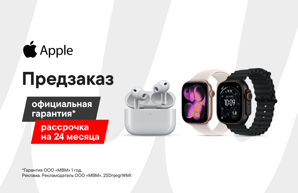 Акция «Рассрочка 0-0-24» действует на товары по акции при оформлении кредита с 01.09.2025 г и до особого распоряжения. Покупайте товары/услуги по акции «Рассрочка 0-0-24» на срок до 24 месяцев. Кредит предоставляет АО «ОТП Банк» Генеральная лицензия Банка России №2766 от 27.11.2014 г.; 125171, г. Москва, Ленинградское шоссе, д. 16А, стр. 2.; ОГРН 1027739176563 (далее – «Банк»). Займы предоставляет ООО МФК "ОТП Финанс" сведения о котором внесены в государственный реестр микрофинансовых организаций 16 февраля 2015 года за номером 651503045006297 , адрес 127299, г. Москва, улица Клары Цеткин, д. 4А; ОГРН 1157746064300 (далее МФК). В акции участвуют товары и/или услуги из списка организатора акции - ООО «МВМ», 105066, Россия, г. Москва, ул. Нижняя Красносельская, д. 40/12, корп. 20, эт.5, пом. II, ком. 3; ОГРН 1057746840095 (далее – «Продавец»). В рамках акции Банк/МФК предоставляет покупателю кредит/заем «М 0-0-24 +Б» на товар и/или услугу Продавца, при оплате которого, в течение 24-ти месяцев ежемесячными платежами, предусмотренными графиком погашения по кредиту/займу, не возникает переплаты при покупке товара. Переплата за товар отсутствует благодаря скидке в размере 15% от первоначальной стоимости товара/ услуги, предоставляемой Продавцом. Скидка не распространяется на дополнительные услуги при оформлении кредита/займа. Первоначальный взнос 0% от цены товара и/или услуги, максимальный срок кредита - до 24 мес. Диапазон значений полной стоимости кредита в Банке 16,100% - 32,270% (годовых). Диапазон значений полной стоимости займа МФК 16,100% - 56,600%(годовых). *Размеры процентных ставок, продолжительность соответствующих периодов их действия и количество таких периодов (возможно установление до 3-х периодов) в каждом конкретном случае определяются Банком/МФК по результатам скоринга. Процентная ставка за пользование кредитом/займом составляет: по кредиту в Банке 16,1%-32,2% (годовых), по займу МФК 16,1%-56,2%(годовых) и действует начиная с 1 по 24-й календарный месяц, при условии оплаты покупателем ежемесячных платежей строго в размере, предусмотренном графиком погашения по кредиту/займу. Стоимость товаров/ услуг для оформления кредита от 3 000 до 300 000 руб. с учётом применённых скидок/ бонусов. Решение о выдаче кредита принимается Банком/о предоставлении займа принимается МФК по своему усмотрению на основании предоставленных покупателем документов. Не является публичной офертой. Количество товара/ услуг ограничено. Условия кредита/займа актуальны на дату начала акции и могут быть изменены Банком/ МФК/ Организатором Акции. Полный текст правил, перечень товаров/ услуг, подробности приобретения товаров/ услуг в кредит в рамках акции уточняйте в магазинах «М.Видео», на сайте www.mvideo.ru, также по телефону 8 800 600-777-5.