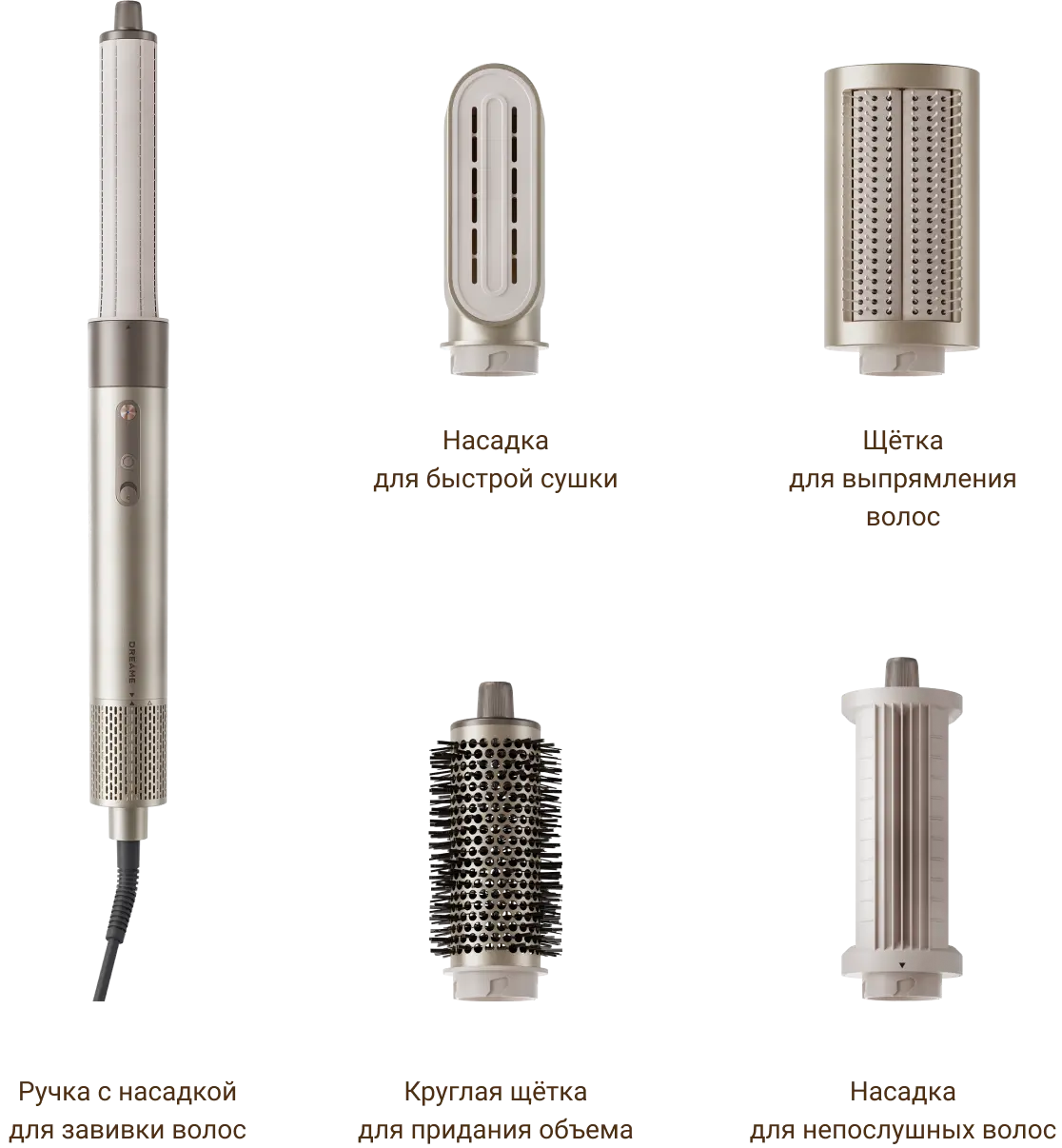 Стайлер Dreame AirStyle ─ инновационное устройство 5-в-1, которое объединяет в себе функции сушки и укладки волос, обеспечивая идеальный результат для всех типов волос.Устройство оснащено мощным мотором со скоростью вращения 100000 об/м, быстро высушивает волосы, экономя время при рекордно маленьком весе всего в 345 грамм.Экспериментируй с укладками вместе с Dreame.