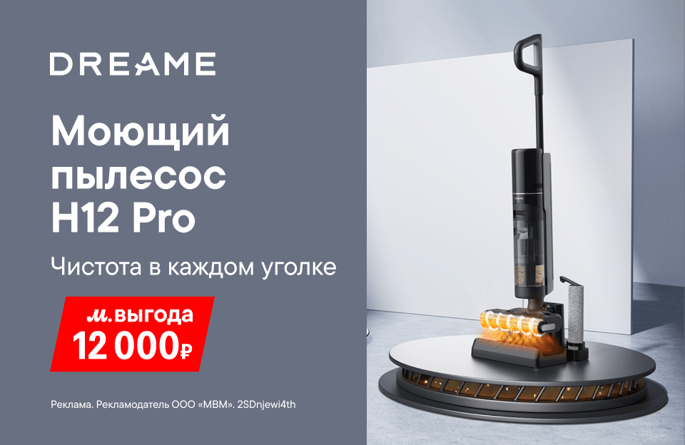Отличное предложение от Dreame. Беспроводной пылесос для влажной и сухой уборки Dreame H12 Pro.Купи его у нас и получи выгоду 12 000 ₽.