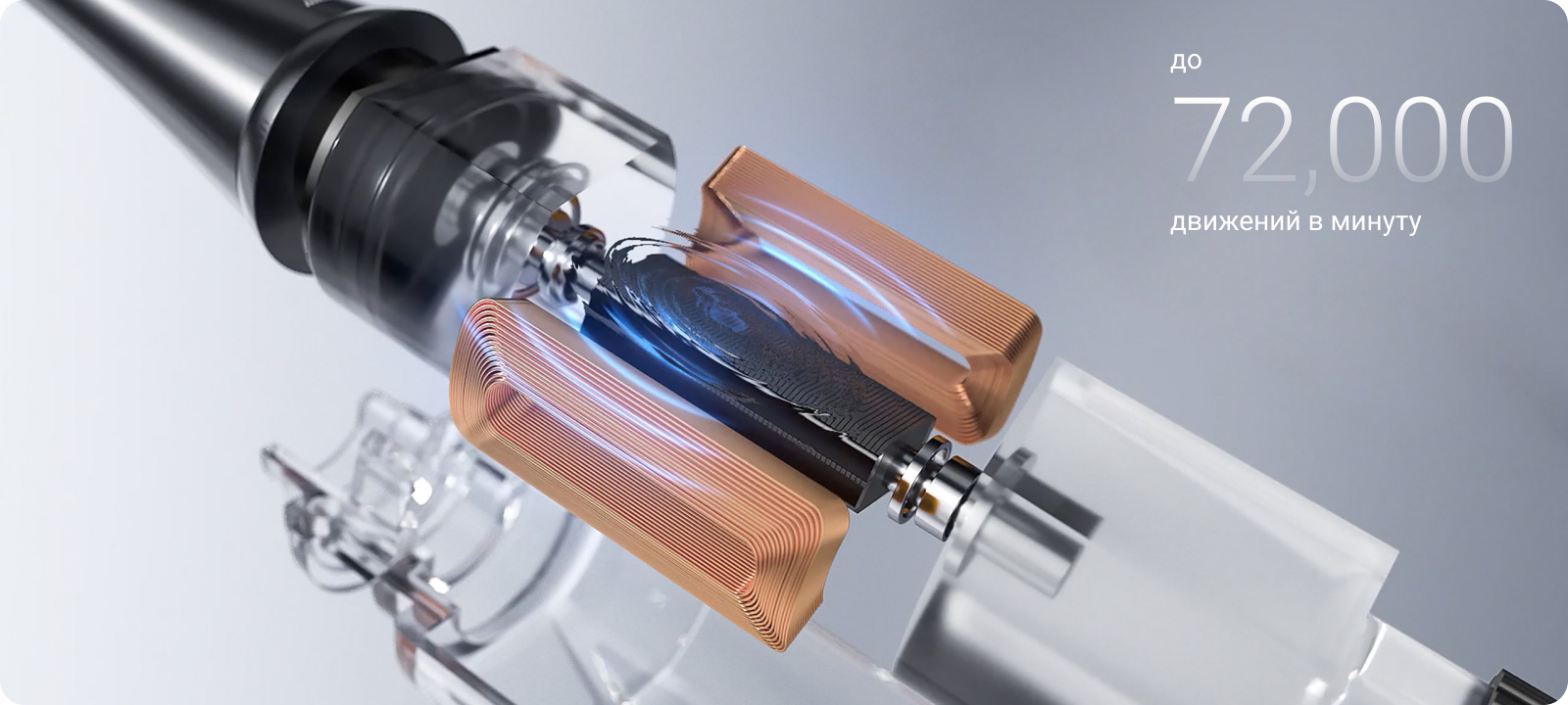 Запатентованный привод обеспечивает до 72 000 движений в минуту, тем самым повышая эффективность очистки