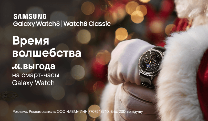 Новый год — время волшебства. И следить за ним лучше по стильным, удобным и надёжным умным часам Samsung Galaxy Watch8 или Galaxy Watch8 Classic. И сейчас подарить такую возможность близкому проще, ведь у нас дествуют скидки на эти чудесные часы. Успей до праздника. Даже время волшебства не ждёт!