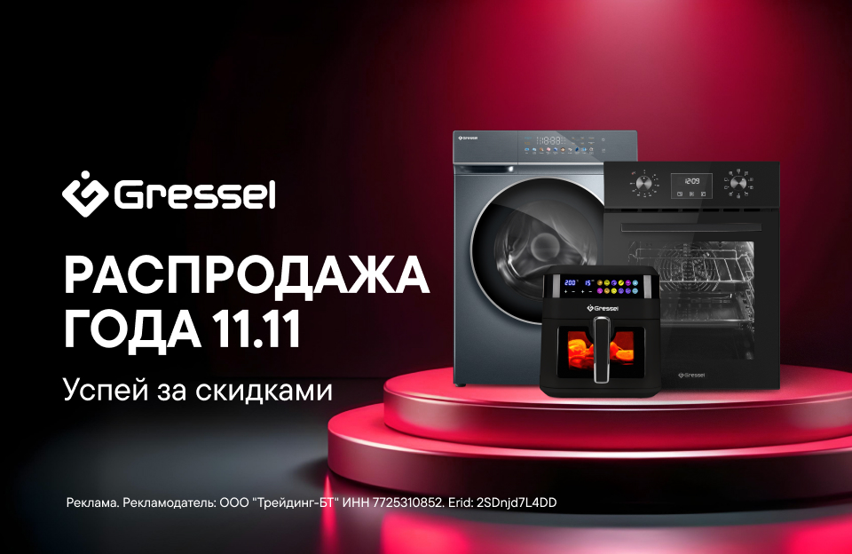 Как техника Gressel умеет встраиваться в твой быт, делая его лучше, так и мы смогли наилучшим образом встроить её в твой бюджет. Тем более, есть такой повод: распродажа года 11.11! Вот почему сейчас на бренд Gressel действуют скидки до 50%. Не упусти свою выгоду.