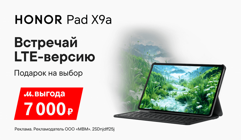 Выбери новинку HONOR Pad X9a до 23 июня и получи наушники HONOR Choice Earbuds S7 или стилус HONOR CHOICE Pencil в подарок.