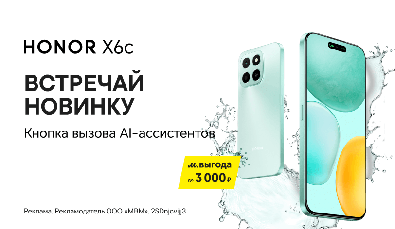 Ты ждал по-настоящему летнюю новинку? Вот она — смартфон HONOR X6c с батареей 5 300 мА·ч, камерой 50 Мп и экраном 120 Гц! Быстрая зарядка 35 Вт, защита от воды и пыли (IP64), кнопка запуска AI-функций и 256 ГБ памяти — всё для твоего комфорта. Успей приобрести новинку с выгодой 3 000 ₽ до 31 июля.
