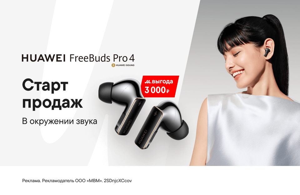 Выбери новые наушники HUAWEI FreeBuds Pro 4 с выгодой 3 000 ₽ до 6 февраля.