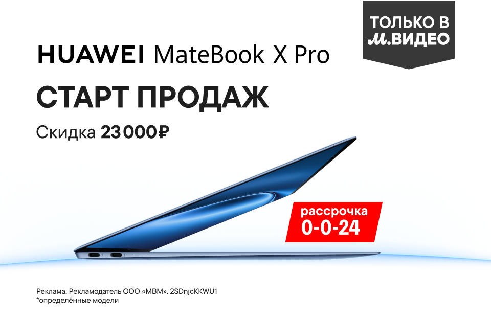 Новинка от компании HUAWEI — ноутбук MateBook X-Pro уже в продаже. Ультралёгкий корпус 980 г. Гибкий OLED-экран. Приобретай новинку с выгодой до 23 000 ₽ уже сегодня.