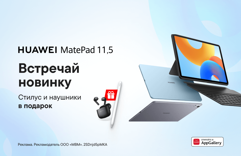Выбери наушники HUAWEI FreeBuds 5i или наушники HUAWEI FreeBuds SE 2 и стилус M-Pen lite в подарок при покупке нового планшета HUAWEI MatePad 11,5" PaperMatte до 10 марта.
