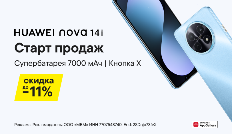 3. HUAWEI Care Защита экрана на 12 месяцев предоставляется при покупке смартфонов серии HUAWEI nova 14i и в отношении них бесплатно или по цене 1 рубль, применяются правила и условия https://consumer.huawei.com/ru/support/screen-protection/.