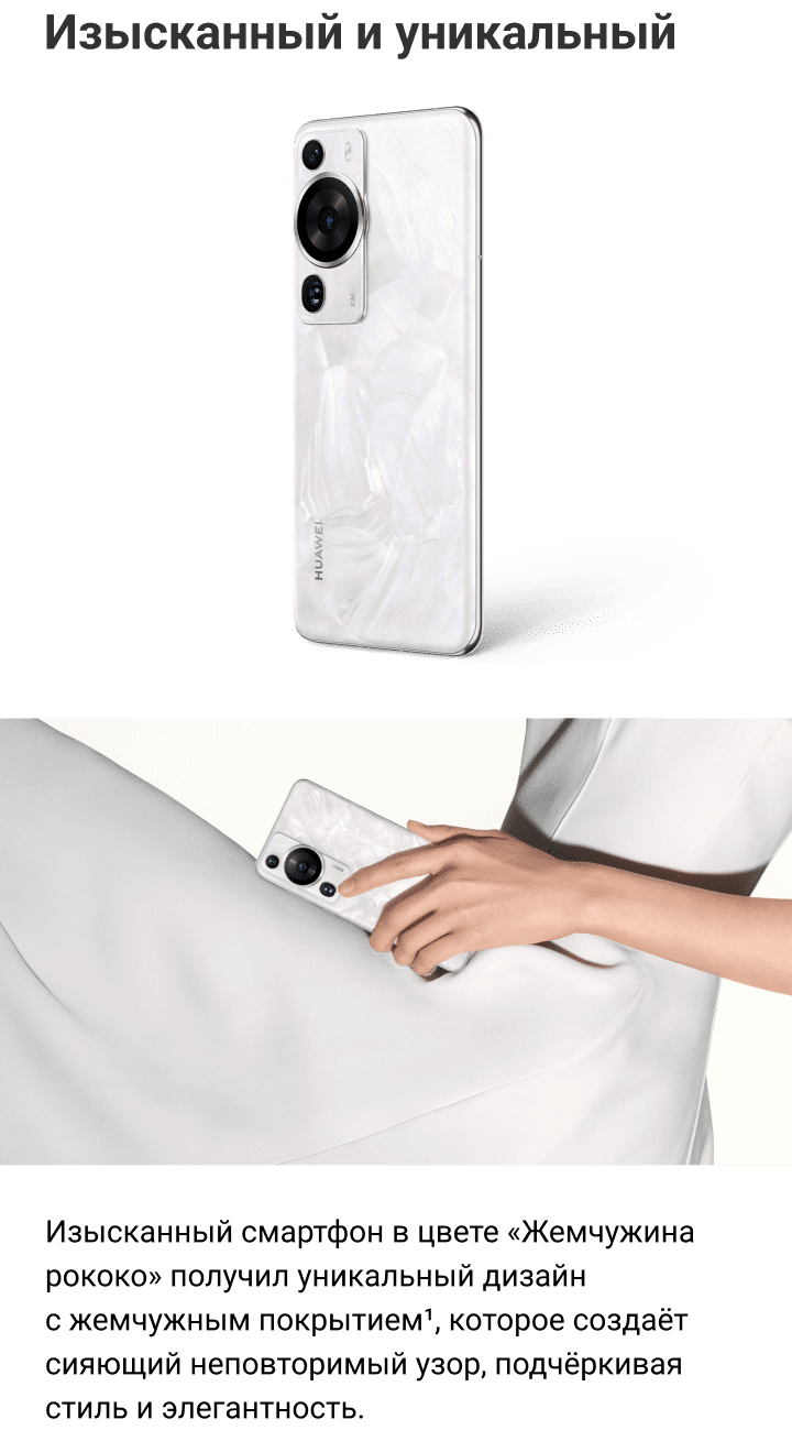 - Только в версии смартфона HUAWEI P60 Pro в цвете «Жемчужина рококо» используется такая техника покрытия.