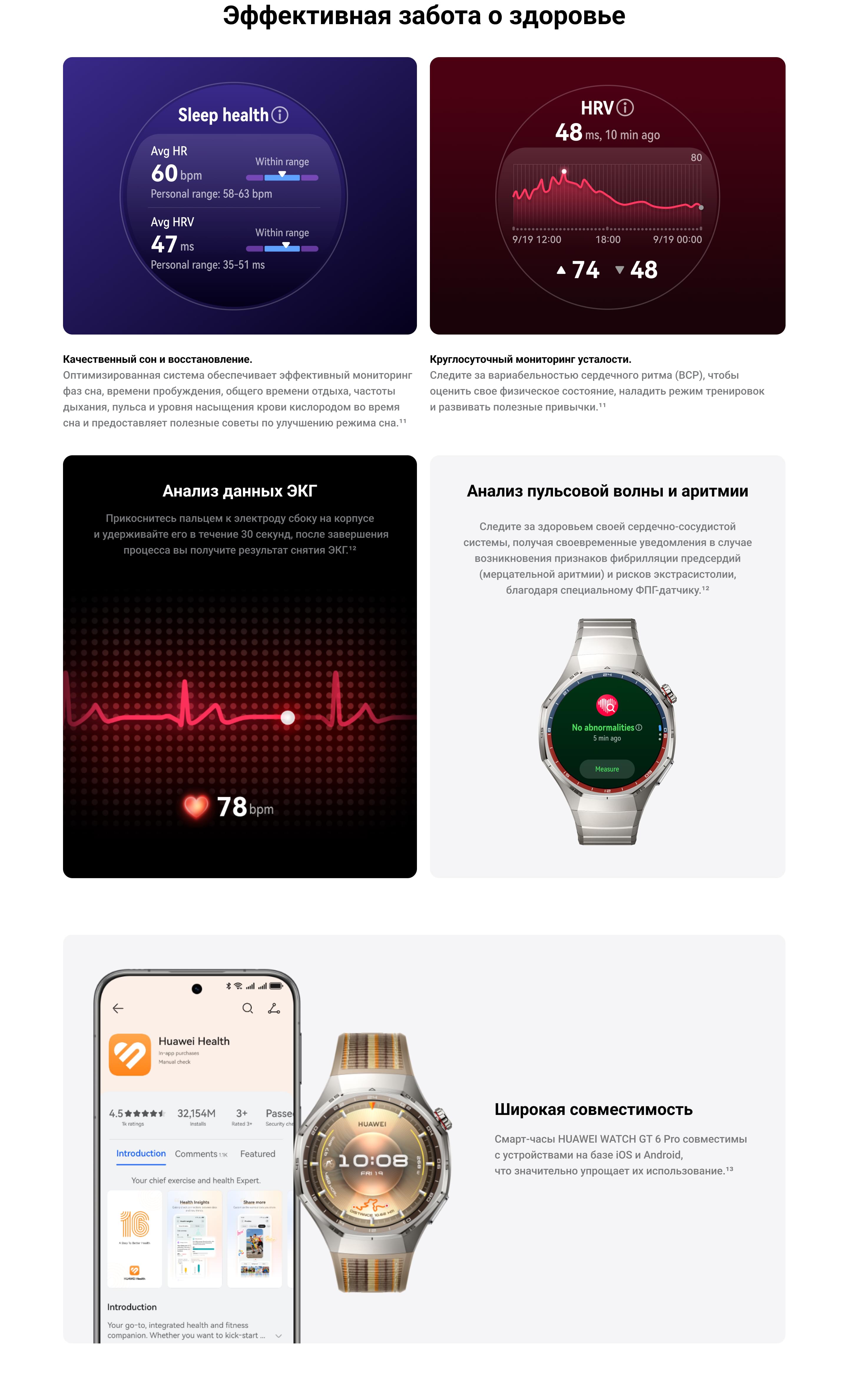 2. HUAWEI Care Дополнительная гарантия на 12 месяцев предоставляется в момент покупки смарт-часов серии HUAWEI WATCH GT 6 и (или) HUAWEI WATCH GT 6 Pro и в отношении них бесплатно или по цене 1 рубль, применяются правила и условия https://consumer.huawei.com/ru/support/extended-warranty/.