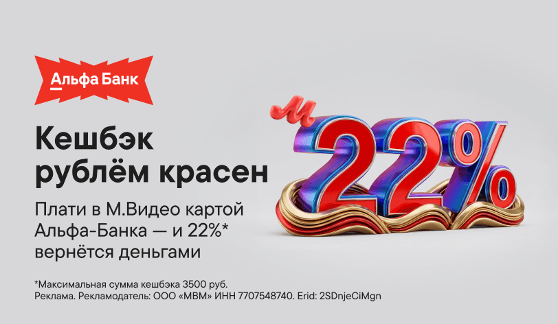 С нами карта Альфа-Банка творит чудеса. Она превращает кешбэк в настоящий НДС, который мы заплатим тебе. Именно так: расплачиваешься картой этого банка на сайте, в приложении или розничных магазинах — и на неё возвращается 22%* от стоимости покупки. Ведь кешбэк рублём красен!