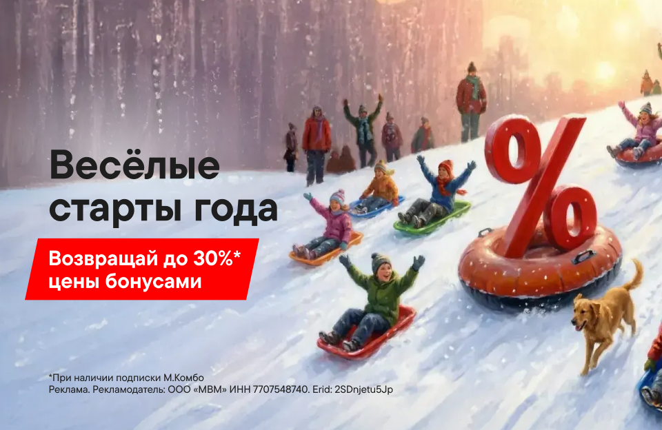 **Кешбэк 6% начисляется за покупку цифровой и бытовой техники, 10% начисляется за покупку аксессуаров, 20% начисляется за покупку сервисов и включают в себя начисление 3%5% или 10% кешбэка по стандартной Программе лояльности. С подпиской М.Комбо повышенный кешбэк Бонусами составит: 10% на цифровую и бытовую технику, 20% на аксессуары, 30% на услуги и сервисы.