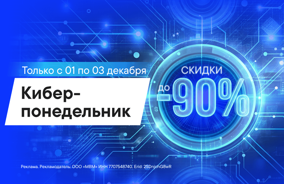 В этот Киберпонедельник выгоды так много, что нам пришлось растянуть его на 3 дня.С 1 по 3 декабря действуют скидки аж до 90%. Успей насладиться этим цифровым изобилием.