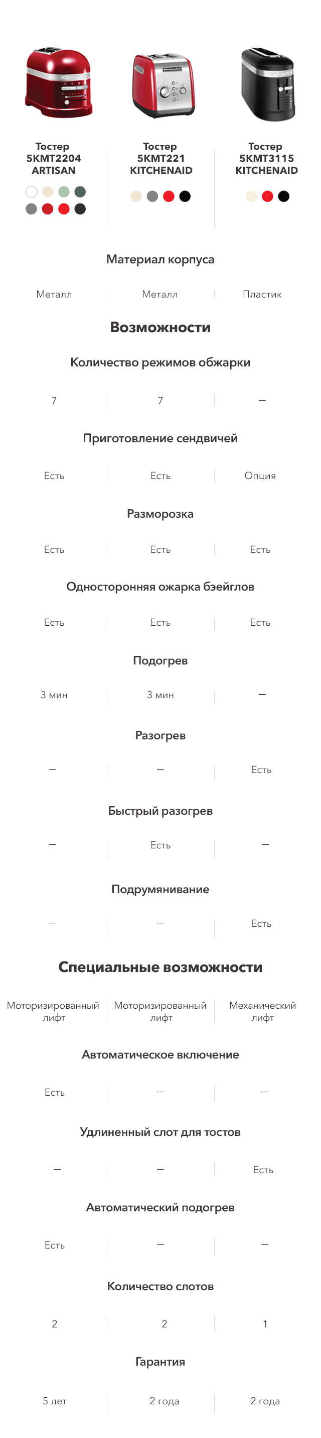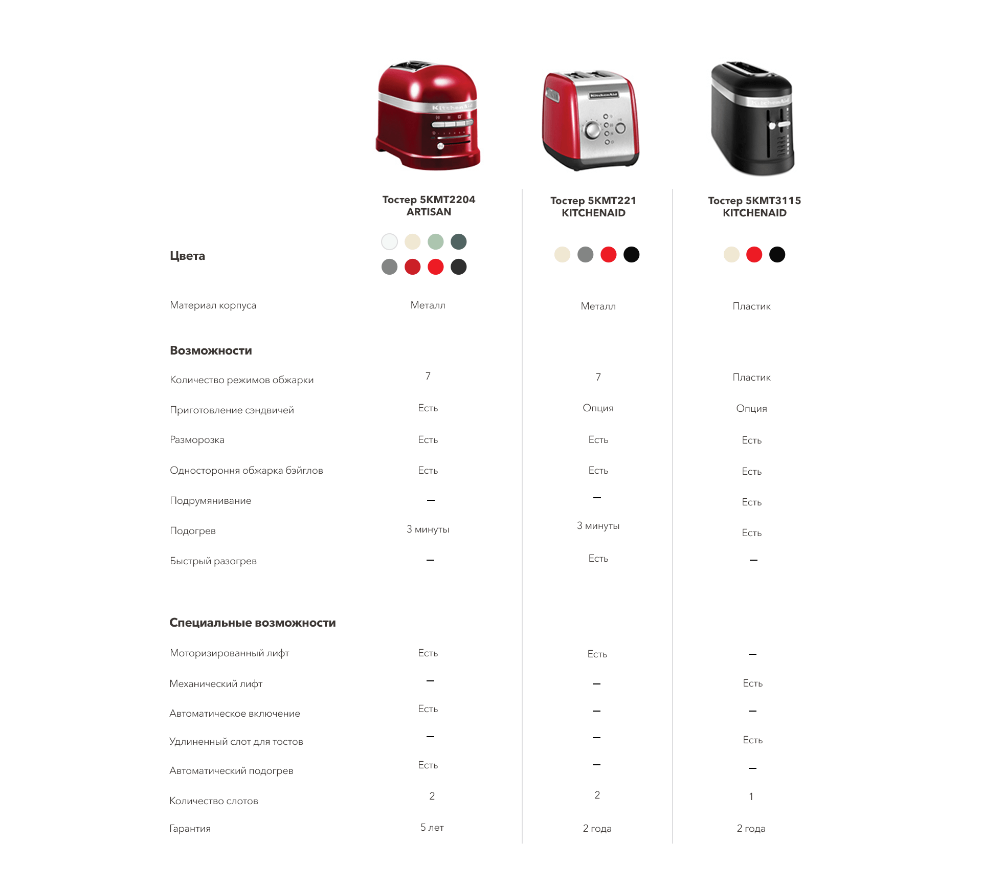 В линейке тостеров KitchenAid® ты непременно найдёшь для себя лучший вариант: с длинными слотами для любимой выпечки или с полным автоматическим приготовлением, классической конструкции или с моторизованным лифтом, для обжарки бейглов или сэндвичей. Тостеры KitchenAid® сделаны так, чтобы сделать утро идеальным. Смотреть товары
