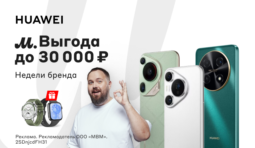 Какая серия подходит тебе больше всего? Смартфоны HUAWEI Pura70, HUAWEI Mate X3 или серия HUAWEI nova? Воспользуйся выгодой до 30 000 ₽ на смартфон во время Недель бренда и получи подарок.