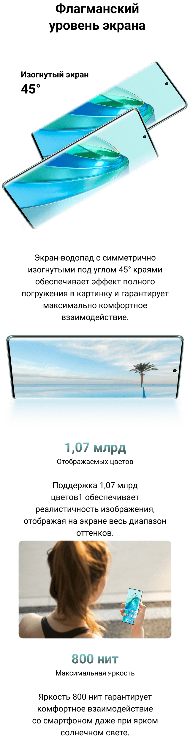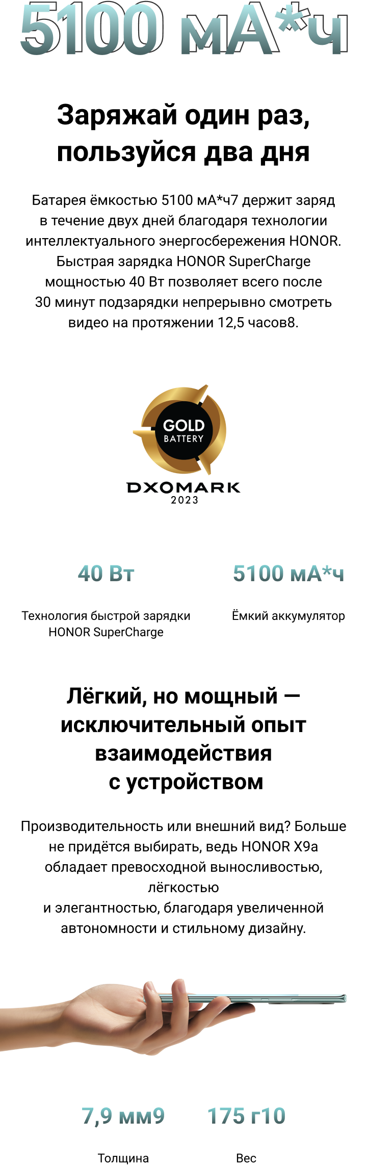 - По данным лаборатории HONOR. Толщина (7,9 мм) измеряется в самом тонком месте устройства и не включает выступ камеры. Фактические размеры могут варьироваться в зависимости от конфигурации, производственного процесса и метода измерения.