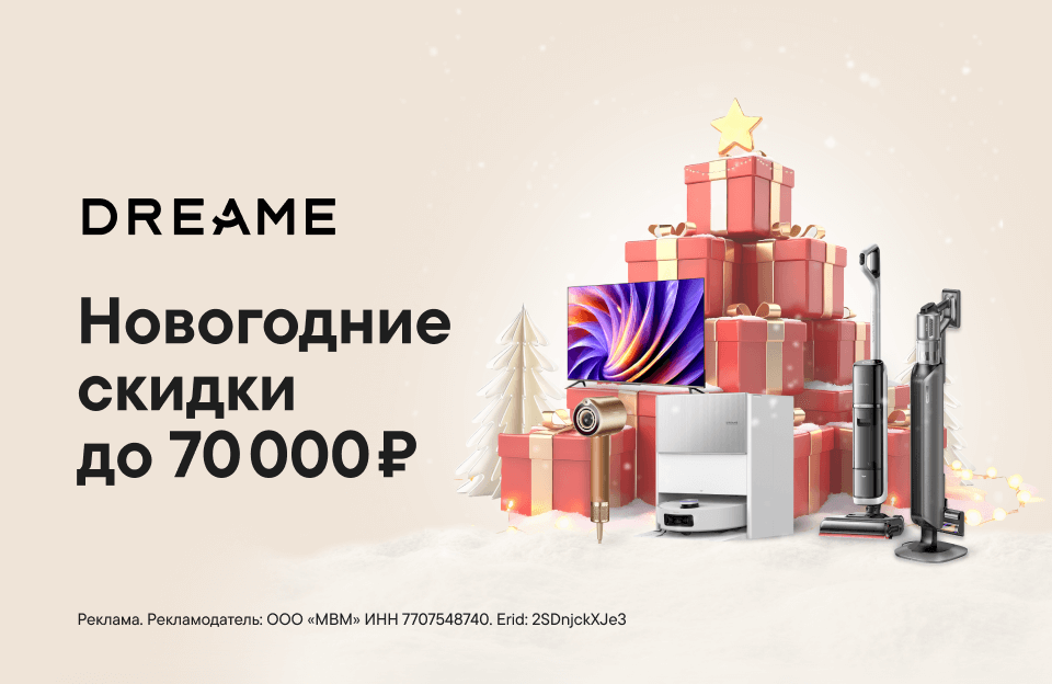Очень может быть, что ты не поверишь своим глазам. И даже захочешь пересчитать нули…Не трать время, всё верно: сейчас действуют новогодние скидки до 70 000 ₽ на технику Dreame.Закончи 2025 с феноменальной выгодой!
