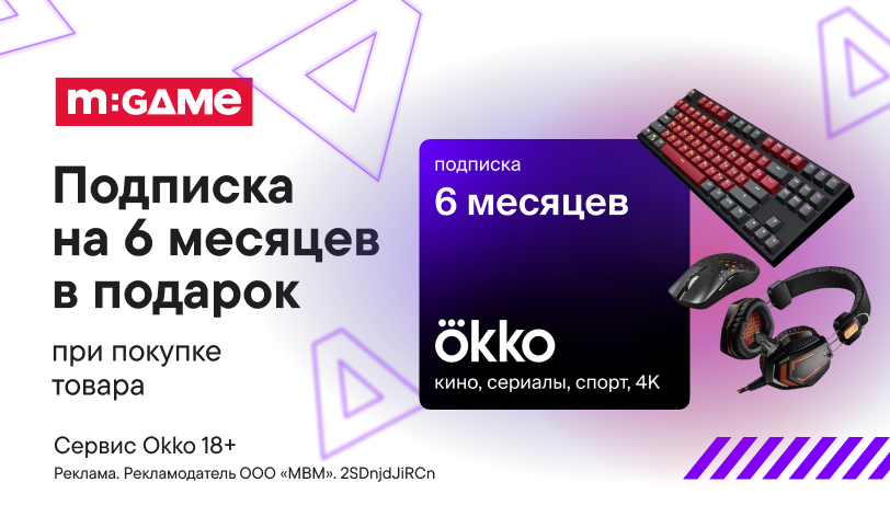 Подписка на онлайн-кинотеатр Okko на 6 месяцев добавится в подарок автоматически. Если этого не произошло — необходимо добавить ее вручную