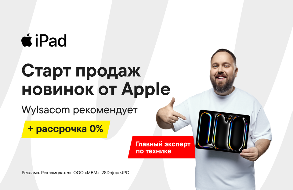 Wylsacom рекомендует Apple iPad!Закажи понравившийся планшет в М.Видео. Покупай в рассрочку до 30 месяцев без первого взноса и переплат и наслаждайся новыми возможностями. М.Видео.Главный эксперт по технике.