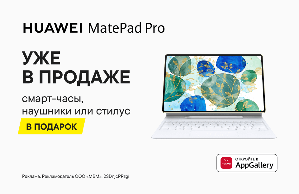 Купи планшет HUAWEI MatePad Pro 12.2 и получи подарок на выбор: смарт-часы, наушники или стилус.