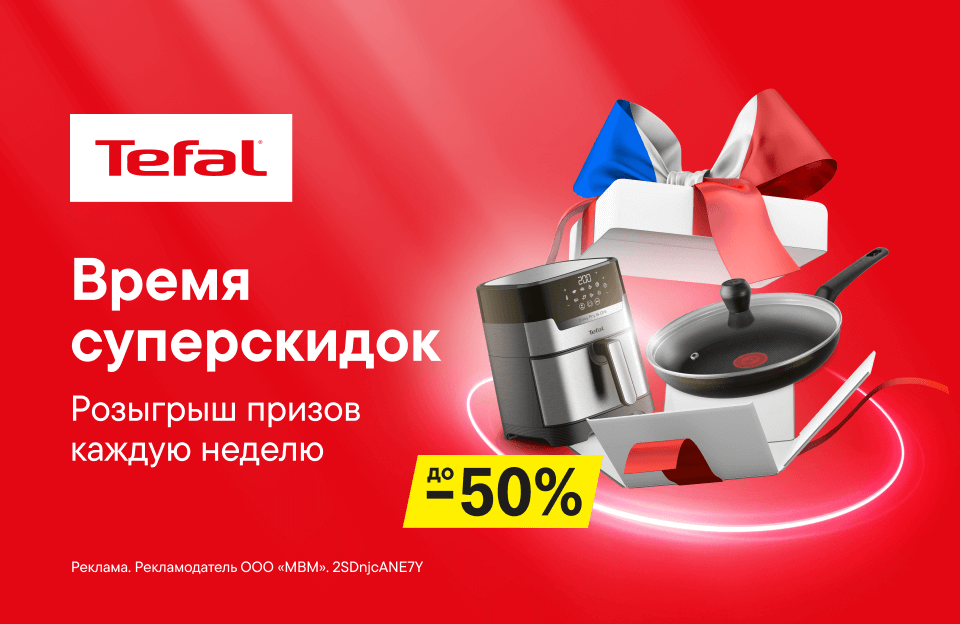 Техника теперь радует не только после покупки, но и во время: ведь у нас есть суперскидки на неё. А ещё, с 3 октября по 6 ноября, каждую неделю мы проводили розыгрыш отличных призов среди тех, кто купил у нас Tefal, Rowenta, Moulinex, Krups от 8 000 рублей*.