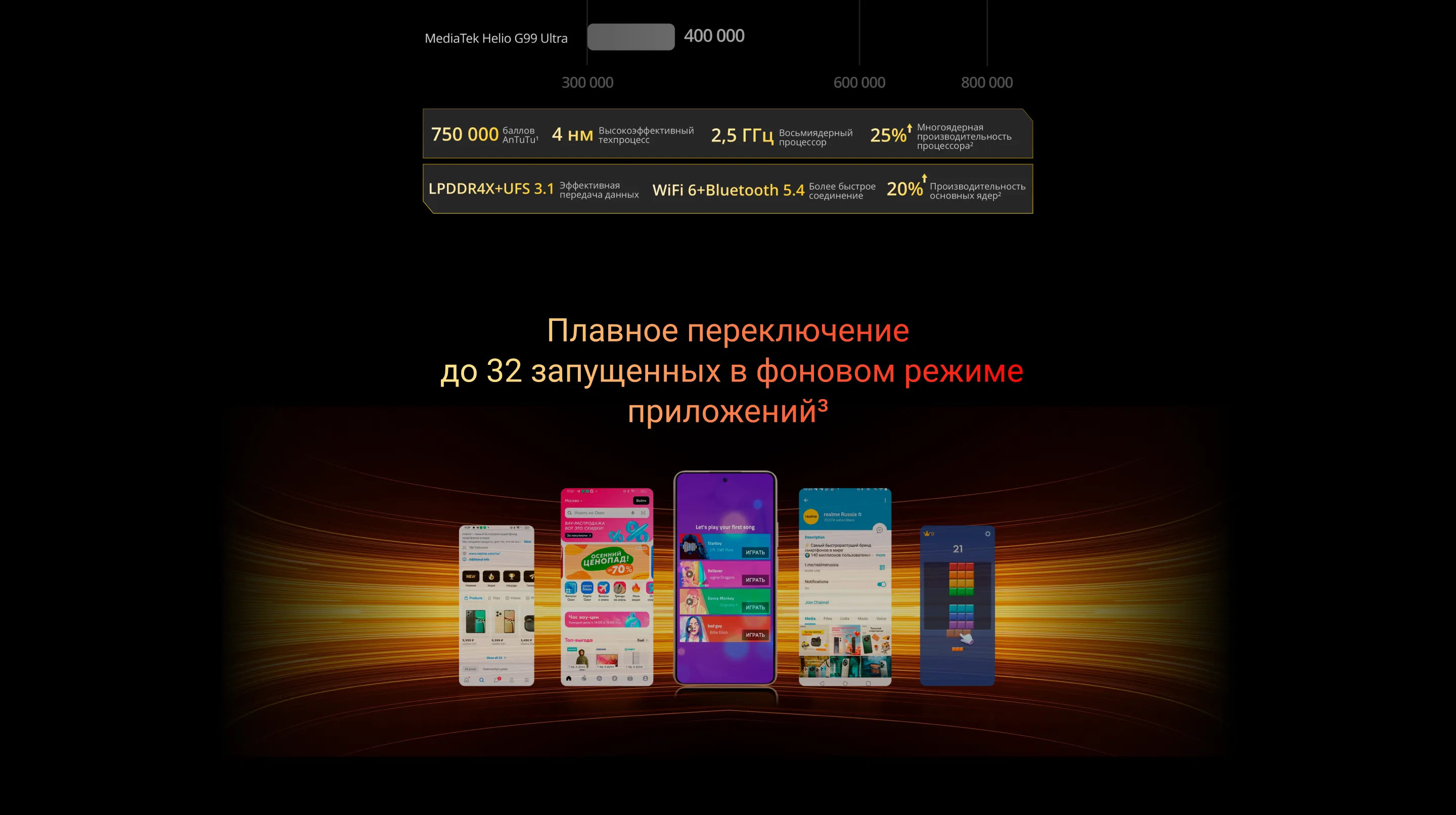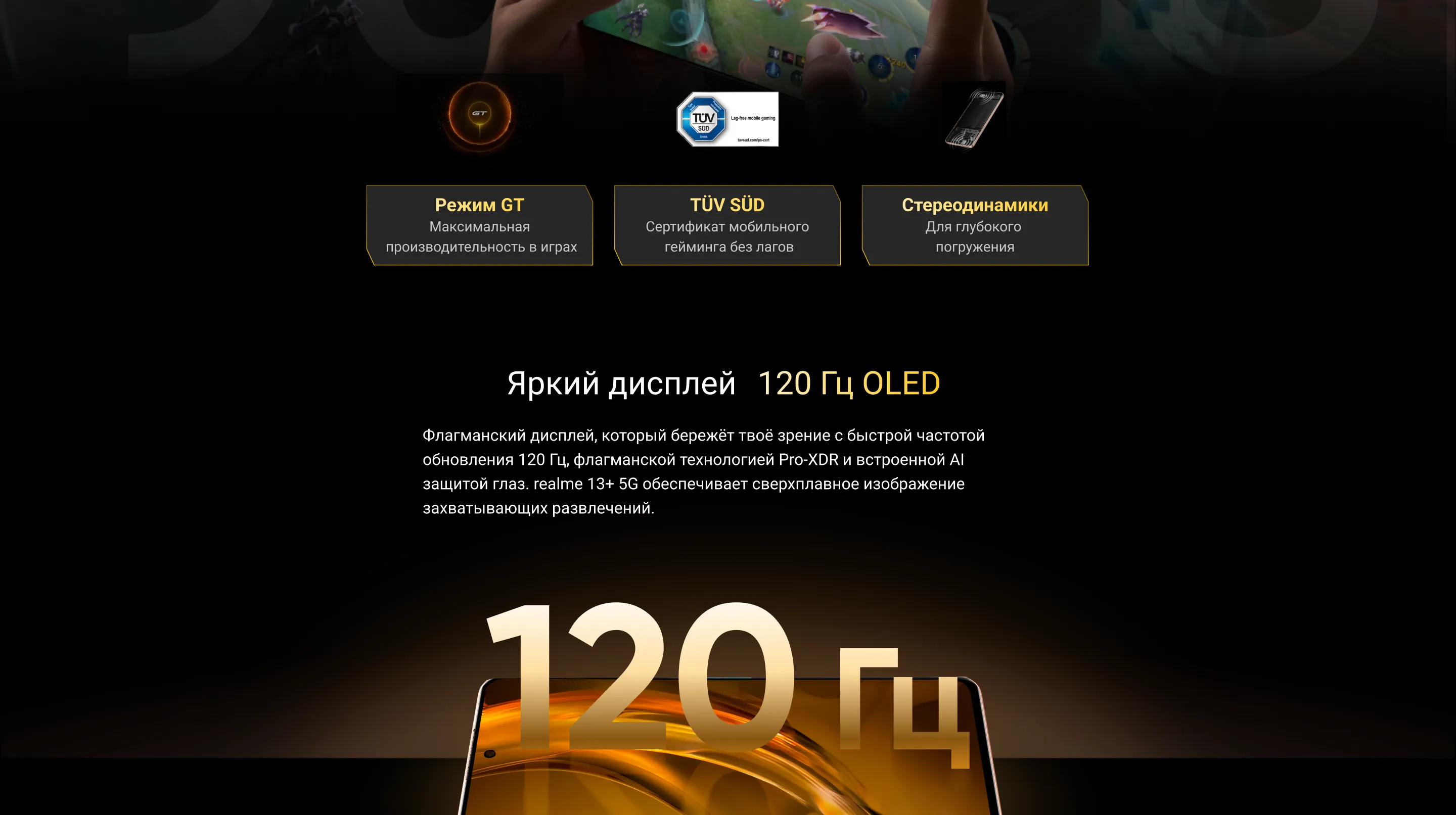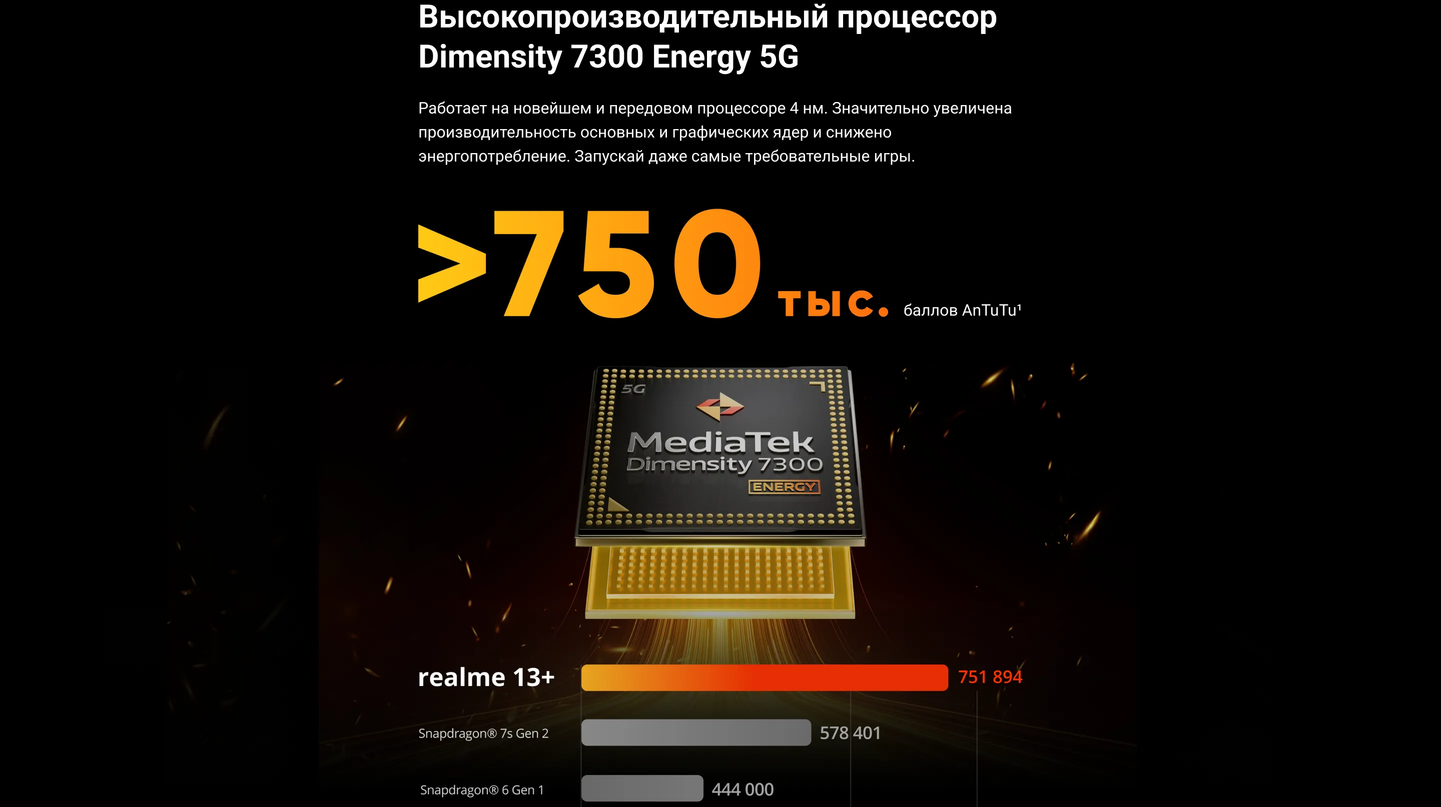 Почувствуй мощь в твоих руках. Новинки от бренда realme — смартфоны 13+ 5G и 13 5G — ждут тебя. Процессор MediaTek D7300. Быстрая зарядка 80 Вт. Ультрачёткая камера Sony с OIS. Выбери одну из новинок серии realme 13 уже сегодня.