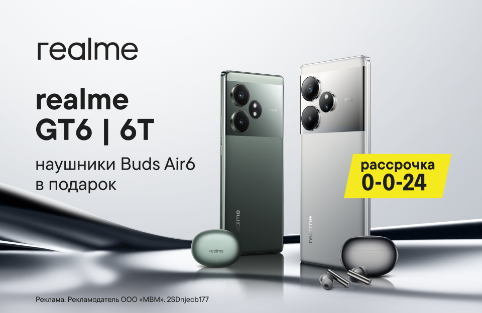 Смартфоны realme GT 6 и GT 6T уже в продаже! Мощные процессоры Snapdragon. AI-технологии. Приобрети новинку realme серии GT 6 до 22 июля и получи наушники серии Buds Air6 в подарок.