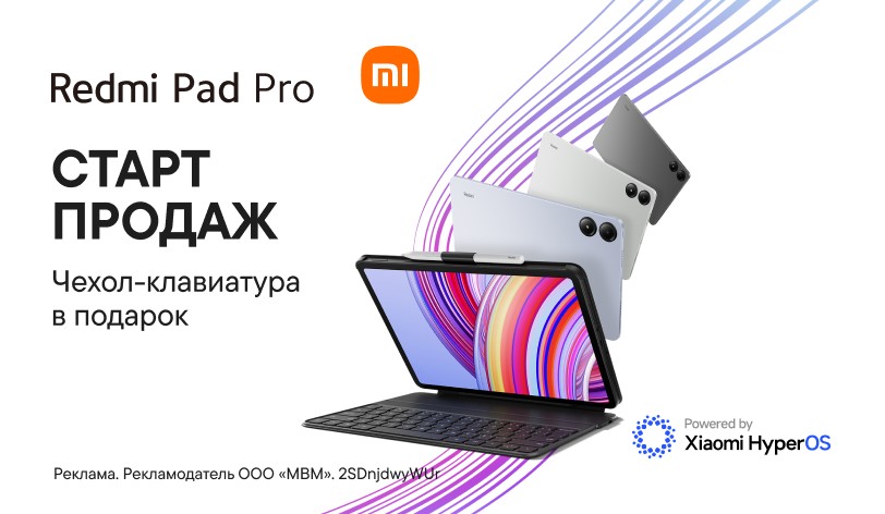 Получи чехол-клавиатуру в подарок при покупке планшета Redmi Pad Pro до 31 июля.